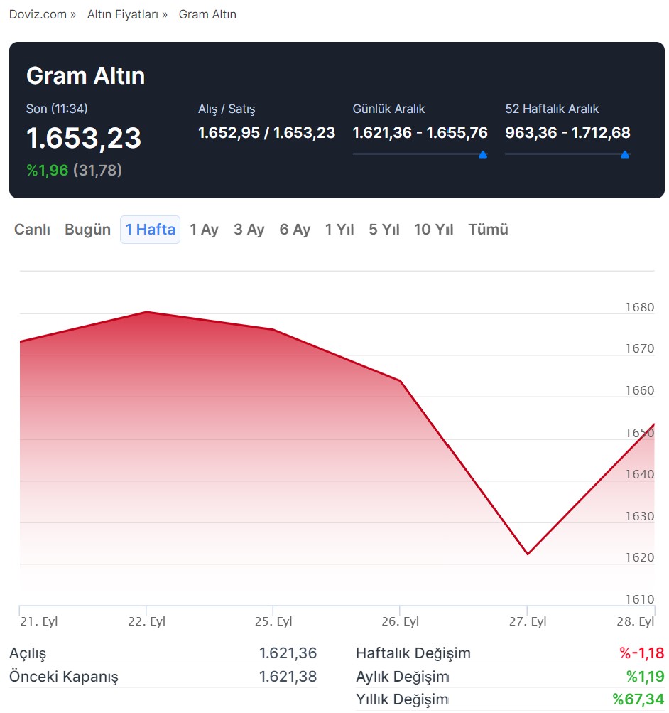 Piyasalar, Fed’in sıkılaştırma konusunda nasıl bir yol haritası izleyeceğini görmek için daha fazla ABD verisini beklerken; gram altın ise %2’ye yakın yükselerek dünkü kayıplarını telafi arayışına girdi. Altın fiyatları yükselen dolar endeksi ve Hazine getirilerinin etkisi ile bir önceki seansta altı ayın en düşük seviyesine indikten sonra perşembe günü kayıplarını telafi etme çabasına girdi. Buna göre gram altın dünü 1622,24 seviyesinden tamamladıktan sonra bugün TSİ 11.45 itibarıyla %1,97 artışla 1.653,43 lira seviyesinden fiyatlandı. Kaynak: Doviz.com - Gram Altın Çarşamba günü yaşanan düşüşte ise ABD’de açıklanan veriler etkili oldu. Buna göre ABD'de dayanıklı mal siparişleri ağustos ayında sürpriz bir şekilde artarak, işletmelerin ekipman harcamalarına yeniden ivme kazandırdığını gösterdi. Bu durum ise geçtiğimiz hafta Fed Başkanı Powell’ın şahin söylemlerinin ardından "daha uzun süre daha yüksek faiz ortamı" beklentisini kuvvetlendirerek, ons altında ve dolayısı ile gram altında sert düşüşlerin yaşanmasına yol açtı. InProved analisti Hugo Pascal da dayanıklı tüketim mallarına yönelik verilerin beklenenden daha yüksek gelmesinin ABD 10 yıllık hazine getirilerinde ve doların yükselişinde etkili olduğunu belirtti. Buna göre dolar endeksi 106,50 seviyesine kadar çıkarak başlıca rakipleri karşısında son 10 ayın en yüksek seviyesine ulaşırken, yatırımcıların ABD ekonomisinin yüksek faiz ortamında rakiplerinden daha iyi performans göstereceğini beklemesi ile ABD 10 yıllık hazine getirileri de son 16 yılın zirvesine tırmandı. Kaynak: Tradingview Minneapolis Fed Başkanı Neel Kashkari de çarşamba günü yaptığı açıklamada, ekonominin güçlenmeye devam ettiğine yönelik bolca kanıtın olduğu bir ortamda ABD Merkez Bankası’nın nihai faiz oranı için bir hedef belirtmesinin mümkün olmayacağını söyledi. [news_id:708947] Daha yüksek faiz beklentileri ise dolar cinsinden fiyatlandırılan ve herhangi bir faiz getirisi olmayan külçe altını elde tutmanın fırsat maliyetini azaltarak, altın fiyatlarındaki satış baskının korunduğuna işaret etti. ABD'de federal hükümet kapanma riskiyle karşı karşıya Ancak, ABD’de hükümet son on yıldaki dördüncü kısmi kapanmanın eşiğinde bulunuyor. Buna göre, ABD Kongresi’nde bu hafta herhangi bir anlaşma sağlanamaması halinde 2019’dan bu yana ilk kez kapanma yaşanması bekleniyor. Hükümetin kapanması durumunda ise yüz binlerce federal çalışanın ücretsiz izne çıkarılmasının gerekeceği gibi, hizmet sektöründen sosyal yardımlara kadar geniş yelpazedeki faaliyetlerin de aksayabileceği belirtiliyor. ABD Seyahat Birliğine göre federal hükümetin kapatılmasının ABD’nin seyahat ekonomisine ise günlük 140 milyon dolara mal olacağı tahmin ediliyor. [news_id:708928] Bu gelişmelerin ortasında piyasaların odağı ise cuma günü açıklanacak olan Fed'in faiz kararını verirken tercih ettiği enflasyon göstergesi olan ağustos ayı kişisel tüketim harcamaları (PCE) fiyat endeksi ile günün ilerleyen saatlerinde açıklanacak olan revize edilmiş ABD ikinci çeyrek GSYH büyüme oranı ve haftalık işsizlik başvurularına çevrildi. [news_id:708838]