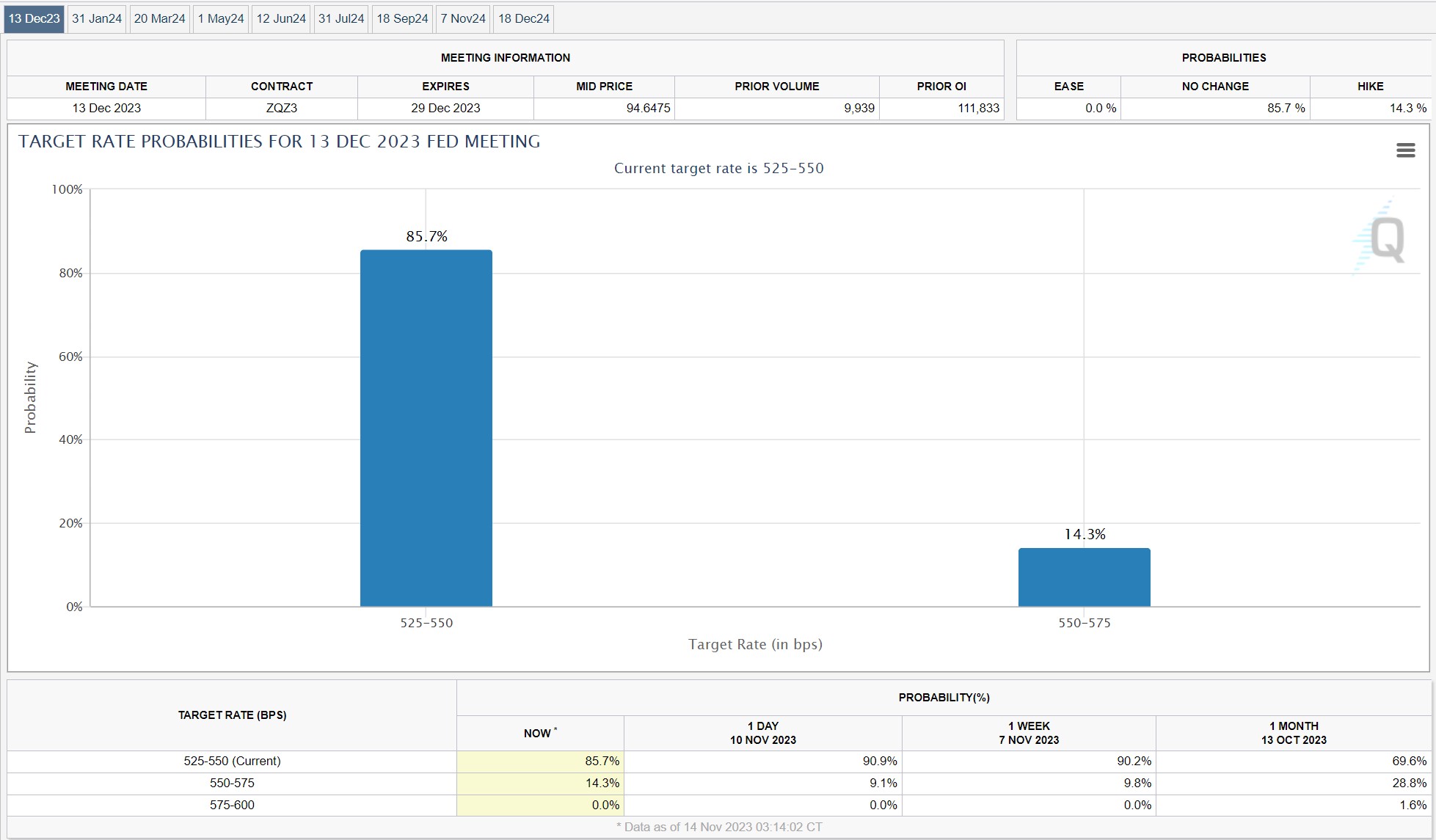 Altın fiyatları, Fed'in faiz oranlarını daha fazla artırıp artırmayacağı konusunda daha fazla netlik sağlayabilecek ABD enflasyon verileri öncesinde temkinli bir seyir izliyor. Uzmanlar ise veri sonrasında oluşabilecek volatiliteye karşı uyarıda bulunuyor. Küresel çapta piyasa katılımcıları, bugün TSİ 16.30'da açıklanacak olan ABD tüketici fiyat endeksi (TÜFE) verilerini bekliyor. Reuters anketine göre Wall Street ekonomistleri, manşet TÜFE'nin eylül ayındaki %0,4'lük artıştan sonra ekim ayında %0,1'lik bir artışa yavaşlamasını bekliyor. Çekirdek enflasyon rakamının ise eylül ayına göre değişim göstermemesi bekleniyor. Capital analisti Kyle Rodda ise konuyla ilgili yaptığı değerlendirmede, verilerdeki herhangi bir yukarı yönlü sürprizin aralık ayında olmasa bile belki de gelecek yılın başında yeni bir artırım olasılığını masaya getirebileceğini söyledi. Rodda, bu kapsamda beklentilerin üzerindeki bir enflasyon verisinin altın için olumsuz bir tablo ortaya koyacağını belirtti. Altın enflasyona karşı bir koruma aracı olarak görülse de, yüksek faiz oranları külçe altın tutmanın fırsat maliyetini artırıyordu. Bu sebeple enflasyonda aşağı yönlü bir sürpriz ise faiz baskısını azaltarak, altın fiyatlarına olan ilgiyi yeniden artıracaktır. Başkan Jerome Powell da dahil olmak üzere Fed yetkilileri ise geçen hafta faiz oranlarının enflasyonla savaşı bitirecek kadar yüksek olmadığını kaydetmişti. [news_id:714234] Bu beklentilerin ortasında CME FedWatch aracına göre piyasalar ise Fed'in aralık ayında faiz oranlarını sabit bırakmasına %85,7 ihtimal veriyor. Ancak bugünkü veriler piyasa katılımcılarının düşüncelerini değiştirebilecek bir katalizör olarak gösteriliyor. Kaynak: CME FedWatch Long pozisyonlarda azalış ABD Emtia Vadeli İşlemler Ticaret Komisyonu ise pazartesi günü yaptığı açıklamada, COMEX altın vadeli işlemlerinde 7 Kasım'da sona eren haftada net long pozisyonların 1.107 kontrat azalarak 105.236'ya düştüğünü belirtti. Veri ise altında yükseliş bekleyen yatırımcı sayısının azaldığına işaret etti. [news_id:714437]