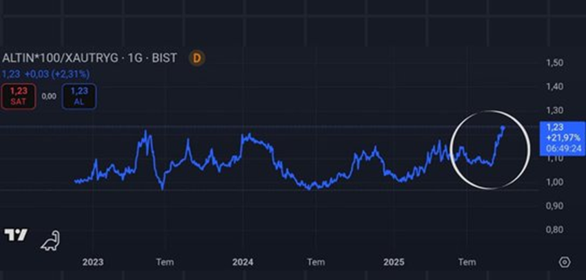 Borsa İstanbul'da işlem gören Darphane Altın Sertifikası ile piyasadaki altın fiyatları arasındaki fark açılmaya başlarken, uzmanlar fiyat farkının nedenini açıkladı. Borsa İstanbul Pay Piyasası Emtia Pazarı'nda işlem gören Darphane Altın Sertifikası ile piyasadaki altın arasındaki makas tarihi seviyeye ulaştı. Buna göre, 0,01 gram altına denk gelen Altın Sertifikası’nın fiyatı dün kapanış itibarıyla 61,40 TL’ye ulaşırken, 100 grama denk gelen sertifikanın fiyatı 6140 TL oldu. Spot piyasada gram altın fiyatı 5028 TL seviyelerinden alıcı bulurken Kapalıçarşı'da gram altın 5178 TL’den fiyatlandı. Ekonomist İris Cibre ise altın sertifikası ile gram altın arasında açılan makasa ilişkin paylaşımında şunları aktadı: “Dayanak varlığı gram altın olan borsa sertifikası AltınS1 ile gram altın fiyatı arasında %23 AltınS1 lehine marj oluştu. Bu tip marjlar genelde ekonomik ve ekonomiye etki edebilecek siyasi risklerde oluşuyor. AltınS1, 0.01 gram altın miktarını içeren bir sertifikadır. Küçük yatırımcı için hem lojistik açıdan hem de miktar açısından büyük kolaylık sağlıyor. Dolayısıyla riskli günlerde spot fiyatla aradaki marj açılıyor. Sertifikada açığa satış imkanı olmaması da fiyat marjının artmasına neden oluyor. Açığa satış imkanı olsa arbitraj fırsatı yarattığından spot değerine yakınsaması gerekirdi. Fakat, marj bu miktarda açıldığında dikkatli olmak gerekiyor. Düzeltmelerde fiyat çok hızlı aşağı gelebiliyor. Marjın ortalama %5-9 arasında olduğunu görüyoruz. Bunun üzerindeki marjlar AltınS1 için önemli risk barındırıyor.” Kaynak: Mesele Ekonomi