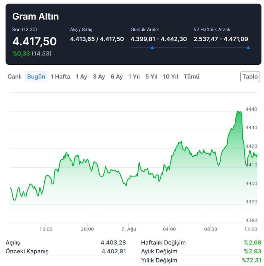 Altın fiyatları, Kremlin’in Rusya Devlet Başkanı Putin ile ABD Başkanı Trump’ın barış müzakereleri için bir araya geleceğini açıklamasının ardından günlük kazançlarını geri verdi. Trump'ın Hindistan gibi bazı ülkelere yönelik ek vergi kararının ardından 3.398 dolara kadar yükselen ons altın, Kremlin’in Trump ve Putin’in barış müzakeresi için görüşeceğini açıklamasının ardından 3.375 dolar seviyelerine kadar indi. Ons altın bugün saat 12.40 itibarıyla 3.378 dolar seviyesinden işlem gördü. Değeri ons altın ve dolar/TL ile hesaplanan gram altın da gün içerisinde 4 bin 442 lira seviyesine kadar yükseldikten sonra iki liderin bir araya geleceğinin açıklanmasının ardından 4 bin 417 liraya geriledi. Altının Trump'ın ticaret savaşı açıklamaları sonrasında savunma aracı olarak öne çıktığını bildiren KCM Trade Baş Piyasa Analisti Tim Waterer ise jeopolitik gerilimlerde yaşanan yumuşama sinyallerinin fiyatları baskıladığını söyledi. Haftanın ilk bölümünde dolar endeksinin zayıf seyretmesi ve Fed'e yönelik faiz indirimi beklentilerinin güçlenmesi altını destekleyen önemli faktörler olarak öne çıkmış, ons altın ve gram altın bu faktörlerin desteğiyle haftalık bazda yüzde 3’e varan yükseliş kaydetmişti. Kısa vadeli ekonomik görünümdeki bozulma beklentisinin, güvenli liman varlığı olarak altına olan talebi artırabileceğini öngören Citi ise üç aylık altın fiyat beklentisini bu gelişmelerin ışığında önceki 3 bin 300 dolar seviyesinden 3 bin 500 dolara çıkardığını duyurmuştu. [news_id:780565] [news_id:780662]