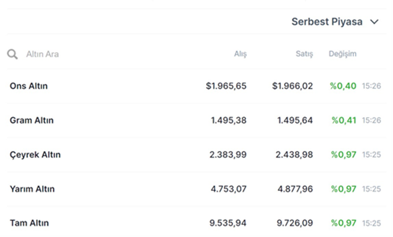 Altın fiyatlarında dolar endeksinde yaşanan geri çekilmenin desteğiyle ılımlı bir yükseliş yaşanırken, ABD Merkez Bankası'nın faiz oranlarını artırmaya devam edebileceğine yönelik beklenti, kazançların sınırlı kalmasına yol açtı. Buna göre, ons altın TSİ 15.15 itibarıyla %0,49 artışla 1.967,51 dolardan işlem görürken, gram altın ise %0,51 artışla 1.497,08 lira seviyesinden fiyatlandı. Marex analisti Edward Meir, altın fiyatlarının yükselmekte zorlandığını belirterek, Fed'in enflasyon ve faiz oranlarına ilişkin mesajının hala şahin olduğunu, ufukta daha fazla faiz artışı olduğu için ise altında satın alma eğiliminin azaldığını söyledi. Faiz kararının ardından paylaşılan Fed'in yeni projeksiyonlarında ise borçlanma maliyetlerinin yıl sonuna kadar yarım puan kadar daha artması gerekebileceğinin sinyali verilmişti. [news_id:697628] Yatırımcılar ise paylaşılan verilerin ardından Fed’in temmuz ayında 25 baz puanlık bir faiz artırımı ihtimalini %72 olarak fiyatlamaya başladı. Dolar endeksi ise son bir ayın en düşük seviyesine yakın seyrederek, altını diğer alıcılar için daha ucuz hale getirdi. Metals Focus Kıdemli Danışmanı Harshal Barot ise Avrupa Merkez Bankası'nın "beklenenden çok daha şahin" olmasının ardından doların bir miktar baskı altına girdiğini ve bunun altın fiyatlarına destek sağladığını söyledi. Barot, gelen ABD verilerine bağlı olarak altının "biraz dalgalı" olabileceğini ve kısa vadede 1.930 ila 1.980 dolar bölgesinde işlem görebileceğini de sözlerine ekledi. Öte yandan, Japonya Merkez Bankası da küresel büyümedeki keskin yavaşlamanın ortasında kırılgan bir ekonomik toparlanmayı desteklemeye odaklanarak, beklenenden daha güçlü enflasyona rağmen ultra gevşek para politikasını sürdürmeye devam etti ve faizleri değiştirmedi. BoJ’un politika hamlesi ise haftanın son işlem gününde altın fiyatlarına destek sağlayan bir diğer önemli katalizör olarak dikkat çekti. [news_id:697834] Kapalıçarşı altın fiyatları Son günlerde Kapalıçarşı kurunun tabela kurunun gerisinde kalması sonrasında, altın fiyatlarındaki yükseliş Kapalıçarşı'da da kendini gösterdi. Buna göre, Kapalıçarşı’da gram altın fiyatı %0,93 artışla 1.489 lira seviyesinden fiyatlandı. Kapalıçarşı'da çeyrek altın fiyatı da dünü 2.415 lira seviyesinden kapattıktan sonra yeni günde 2.438 liraya çıktı. Kapalı Çarşı'da yarım altın ise dünü 4.831 liradan tamamladıktan sonra 4.837 liradan fiyatlandı. Cumhuriyet altını ise dünü 9.632 lira seviyesinde noktaladıktan sonra haftanın son işlem gününde 9.734 lira seviyesinden işlem gördü. Kaynak: Doviz.com - Altın Fiyatları Tıklayın: Yatırım için hangi altın alınmalı?: Kuyumcular açıkladı
