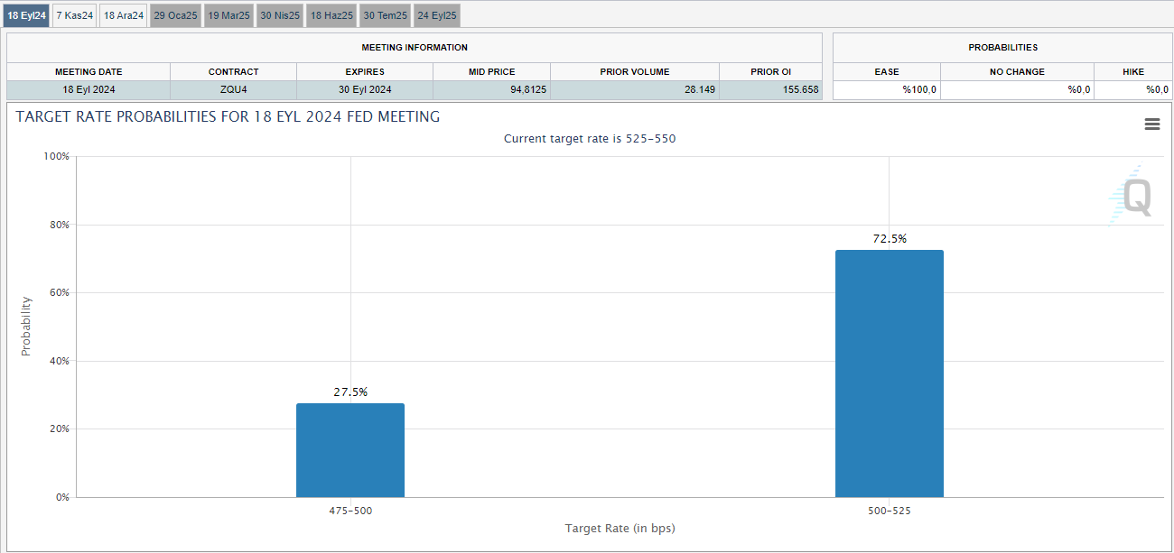 ABD’de açıklanan makroekonomik verilerin yatırımcılara karışık sinyaller verdiği haftanın son gününde altın fiyatları yeni rekorun eşiğine ulaştı. ABD'de bu hafta açıklanan enflasyon verilerinin fiyat baskılarını hafiflettiğine işaret etmesi sonrası dün açıklanan perakende satış verileri tüketici harcamalarının güçlü kaldığını ortaya koydu. Makroekonomik cepheden gelen karışık sinyallerin ortasında altın fiyatları ise haftanın son işlem gününde yeni rekorun eşiğine ulaştı. Buna göre tüm zamanların en yüksek seviyesi 2 bin 484 dolar olan ons altın, haftanın son işlem gününde 2.467 dolardan işlem görürken; değeri ons altın ve dolar/TL ile hesaplanan gram altın ise en yüksek seviyesi olan 2.674 liranın hemen altında 2.672 liradan fiyatlandı. Böylelikle haftalık bazda ons altın ve gram altın sırasıyla yüzde 1,48 ve yüzde 2,06 kazanç elde etti. Piyasaların takip ettiği gelişmeler Piyasalar bu hafta önce ABD enflasyon rakamlarını daha sonra ise ülkede tüketim davranışlarını yansıtacak perakende satış verilerilerini beklemişti. Çarşamba günü açıklanan ABD enflasyon verileri son üç yıl boyunca ilk kez %3’ün altına indi. Faiz indirimi beklentilerini güçlendiren veri sonrasında ise son olarak dün, ABD'de perakende satış verileri açıklandı. Veri, temmuzda aylık bazda yüzde 1 ile beklentilerin üzerinde artış kaydederek, Ocak 2023'ten bu yana kaydedilen en yüksek aylık artışı gerçekleştirdi. Bu durum ise tüketimin canlı olduğunu göstererek faiz indirimi beklentilerinin tarihinde olmasa bile boyutunda değişikliğe yol açtı. Buna göre açıklanan veri sonrasında piyasalar Fed’in eylülde 50 baz puan indirime gitmesine yüzde 27,5 ihtimal vermeye başladı. Bu oran daha önce yüzde 50’nin üzerine kadar çıkmıştı. Kaynak: CME Group Faiz indirimi beklentilerinin gerilemesine rağmen altının rekor seviyelere ulaşmasında ise merkez bankalarının ve Çinli tüketicilerden gelen alımların devam etmesi etkili oldu. Öte yandan Orta Doğu ve Ukrayna'daki gerginliğin sürmesi de altındaki güvenli liman alımlarının sürmesine sebep oldu. Bu gelişmelerin ardından piyasalar ise önümüzdeki hafta Jackson Hole’de bir araya gelecek merkez bankası başkanlarının sözlü yönlendirmelerini beklemeye başladı. Özellikle Fed Başkanı Powell’ın faiz indirimi yönünde vereceği mesajlar altının kısa vadeli seyri üzerinde belirleyici olacak. [news_id:742894] Altın fiyatlarında takip edilecek seviyeler Doviz.com analisti Osman Bayrak, ons altında 2 bin 480 dolar seviyesinin kritik öneme sahip olduğunu belirterek, bu seviyenin olası kırılımında ons altının 2 bin 600 doları yeni hedef yapabileceğini söyledi. Bir önceki ATH olan 2 bin 480 seviyesinden gelebilecek bir satış durumunda ise 2 bin 450 ve 2 bin 420 dolar seviyelerinin takip edilmesi gerektiğini belirtti. Bayrak, gram altında ise 2 bin 700 liranın önemli bir direnç seviyesi olduğunu belirterek, bu seviyenin aşılması halinde takip edilecek bir sonraki noktanın 2900 lira olacağını aktardı. [news_id:742629]