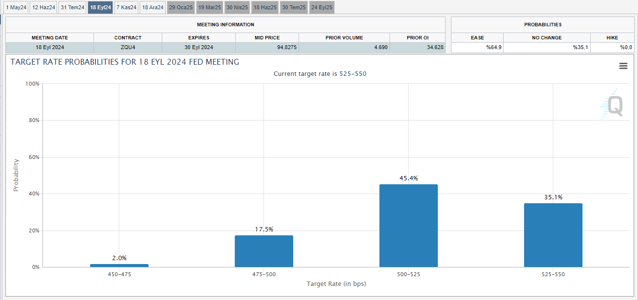 Altın fiyatları, Orta Doğu'ya yönelik jeopolitik endişelerin azalması ve faiz indirimi beklentilerinin ötelenmesiyle birlikte yeni haftanın ilk gününe düşüşle başladı. Altın fiyatları haftanın ilk işlem gününde Orta Doğu'da yaşanabilecek olası bir çatışmaya yönelik endişelerin azalmasıyla %2'ye yakın değer kaybetti. Buna göre ons altın TSİ 14.45 itibarıyla %2,05 düşüşle 2.342 dolar olurken, değeri ons altın ve dolar/TL ile hesaplanan gram altın da %1,86 düşüşle 2.453 lira oldu. ActivTrades analisti Ricardo Evangelista da İran ve İsrail arasında devam eden gerilimin topyekûn bir savaşa dönüşmesi endişelerinin azalmasının altın fiyatlarını destekleyen güvenli liman alımlarını durdurduğunu söyledi. Jeopolitik gelişmelerin yanında cuma günü açıklanacak olan ABD kişisel tüketim harcamaları (PCE) raporunun da altın fiyatlarını etkileyebileceğini belirten Evangelista, enflasyonun sürekliliğine ilişkin korkuları teyit ederek faiz indirimlerini erteleyebileceğini ve bunun da altın için olumsuz bir görünüm oluşturduğunu söyledi. Faiz indirimi beklentileri 2023 yılının sonundan bu yana altın fiyatlarını destekleyen gelişmelerden biri olmuştu. Ancak, Fed yetkililerinin açıklamaları faiz indirimi beklentilerini ötelerken altına yönelik desteğin de azalmasına yol açtı. Bu kapsamda son olarak Chicago Fed Başkanı Austan Goolsbee, enflasyonu düşürme konusundaki ilerlemenin bu yıl durduğunu belirterek, faiz oranlarının daha uzun süre yüksek kalması gerektiğini belirtti ve faiz indirimi için erken olduğunu düşünen Fed yetkililerinin arasına katıldı. Piyasa katılımcıları şu anda Fed’in ilk faiz indirimi hamlesini eylül ayında yapmasına yüzde 45 ihtimal veriyor. Daha önce bu beklentiler ilk indirimin haziran ayında gerçekleşmesi yönündeydi. Kaynak: CME Fedwatch Geçtiğimiz hafta ise ABD'li bankacılık devleri Citi ve Goldman Sachs analistleri, İran-İsrail geriliminin ortasında altın fiyatlarına ilişkin tahminlerini güncellemişti. Citi, 2024 ve 2025 altın fiyatı tahminlerini sırasıyla yüzde 6,8 artırarak 2.350 dolara, yüzde 40 artırarak 2.875 dolara yükseltirken Goldman Sachs analistleri ise 2024 yıl sonu için altın fiyat hedefinin 2300 dolardan 2700 dolar seviyesine yükseltildiğini duyurmuştu. [news_id:730187] [news_id:730800]