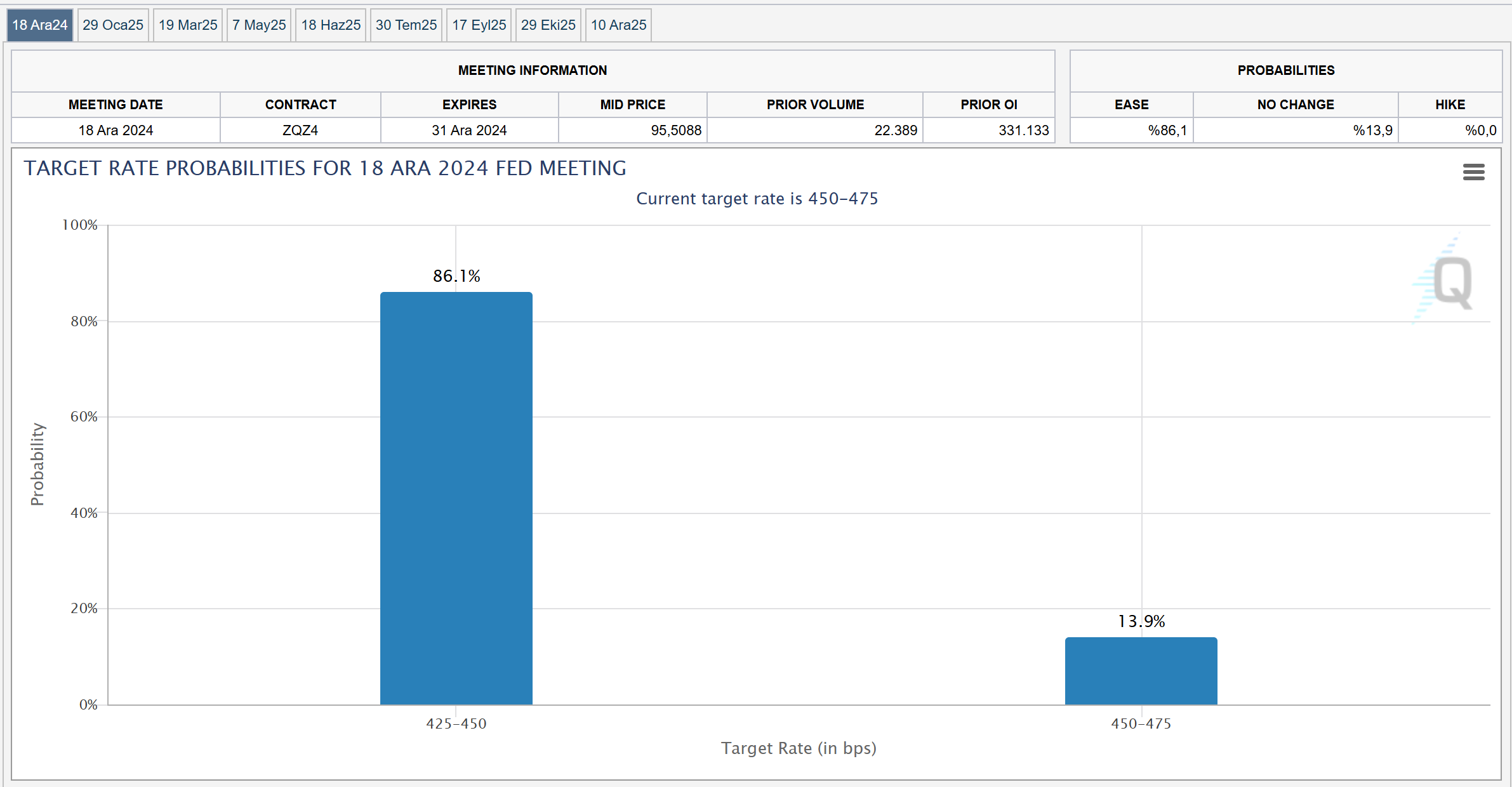 Gram altın, küresel çapta değer kazanan ons altının etkisiyle 25 Kasım tarihinden bu yana ilk kez 3 bin lira sınırının üzerine çıktı. Ons altın, saat 18.00 itibarıyla yüzde 1,10 yükselişle 2687 dolardan fiyatlanırken; değeri ons altın ve dolar/TL ile hesaplanan gram altın ise yüzde 1,23 artışla 3 bin 12 liraya yükseldi. Gram altın böylelikle 25 Kasım tarihinden bu yana ilk kez 3 bin lira sınırının üzerine çıkmış oldu. Ons altında 3 bin dolar beklentisi Son olarak Çin Merkez Bankası’nın (PBoC) açıkladığı resmi veriler, altı aylık bir aranın ardından kasım ayında PBoC’nin rezervlerine altın eklediğini göstermişti. Çalkantılı bir dönemde merkez bankalarının altın alımlarının arttığını belirten Rusya'nın en büyük bankalarından VTB'nin Başkanı Andrey Kostin ise alımların yükseliş beklentilerini desteklediğini ifade ederek, “Analistlerim ons başına 2900, hatta 3000 dolara kadar olası bir artış öngörüyor. Altın fiyatları konusunda biraz iyimseriz. Altının daha fazla yükseliş potansiyeli olduğuna inanıyoruz.” değerlendirmesinde bulunmuştu. [news_id:754081] Fed kararı altın yatırımcılarının odağında olacak Altındaki yükselişin ortasında ABD Merkez Bankası'nın (Fed) 17-18 Aralık'ta gerçekleştireceği yılın son toplantısında alacağı para politikası kararı ise yatırımcıların odağında kalmayı sürdürüyor. Bu kapsamda analistler de yarın açıklanacak ABD enflasyon verisinin Fed'in gelecekteki para politikasını etkileyebileceğini belirterek, altın fiyatlarında volatilitenin artabileceğini söylüyor. Para piyasalarında Fed'in bu ay yüzde 86 ihtimalle 25 baz puanlık bir faiz indirimi yapması bekleniyor. Kaynak: CME Fedwatch Analistler teknik açıdan bakıldığında ise altının ons fiyatında 2 bin 750 dolar seviyesinin direnç, 2 bin 650 dolar seviyesinin de destek konumunda olduğunu belirtiyor. [news_id:755479]