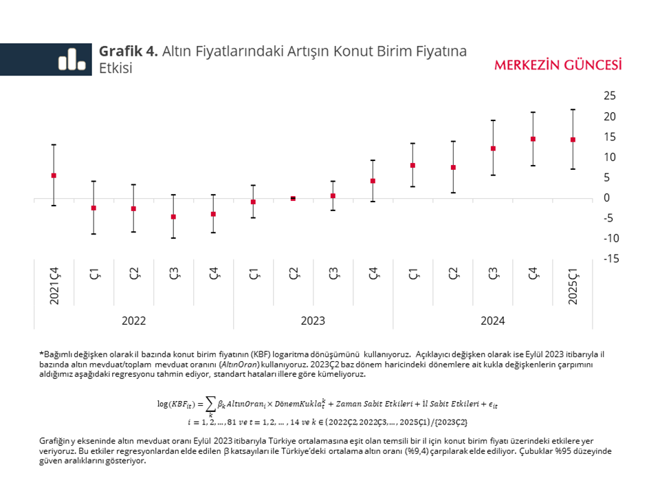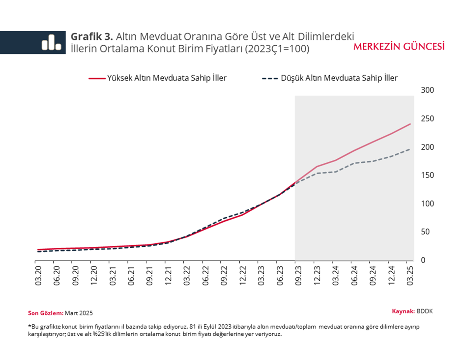Türkiye Cumhuriyet Merkez Bankası (TCMB) ekonomistleri tarafından hazırlanan analizde, Eylül 2023 sonrası dönemde altın fiyatlarında yaşanan keskin artışın konut ve otomobil piyasalarında talep artışına neden olduğu bildirildi. TCMB'de müdür olarak görev yapan Mehmet Selman Çolak ve uzman olarak görev yapan Mehmet Emre Şamcı tarafından kaleme alınan "Altın Fiyatı Kaynaklı Servet Artışının Konut ve Otomobil Piyasalarına Etkisi" başlıklı blog yazısı, Merkezin Güncesi sayfasında yayımlandı. Yazıda ülkemizde il bazında altın mevduat tercihlerindeki farklılıkları kullanarak, altın fiyatındaki artışın konut ve otomobil gibi alım satıma konu dayanıklı mal piyasalarındaki etkisini incelendi. Analizden öne çıkanlar şöyle oldu: "Küresel ölçekte jeopolitik belirsizliklerin artması ve merkez bankalarının yoğun altın alımları ile Eylül 2023-Nisan 2025 döneminde uluslararası piyasalarda altın fiyatları ABD doları cinsinden yaklaşık yüzde 77 yükseldi. Fiyat artışının da katkısıyla, ülkemizde geleneksel servet tutma araçlarından biri olan altının mevduat içindeki payında artış yaşandı. Altın fiyatındaki yükseliş, Türkiye’de tasarruflarının önemli bir kısmı altın cinsinden olan kesimler için dikkate değer ölçüde servet artışı anlamına geliyor. Böyle bir servet artışının talep üzerinde yukarı yönlü bir etkisi olacağı değerlendirilebilir. Bu yazıda ülkemizde il bazında altın mevduat tercihlerindeki farklılıkları kullanarak, altın fiyatındaki artışın konut ve otomobil gibi alım satıma konu dayanıklı mal piyasalarındaki etkisini inceliyoruz. Kaynak: TCMB Altın mevduatının tasarruf mevduatına oranının, altın fiyatlarının hızla artmaya başladığı 2023 yılı eylül ayında iller arasında önemli ölçüde farklılaştığı görülüyor. İlgili dönemde illerin birbirinden büyük ölçüde ayrışmasına neden olacak önemli bir gelişme olmadığından, söz konusu farklılaşma bize altın fiyatının servet artışı kanalıyla konut ve otomobil piyasalarındaki etkilerini inceleme fırsatı sunuyor. Kaynak: TCMB Servet etkisinin varlığına yönelik önemli bir ipucunu, mevduattaki altın payının yüksek olduğu illerdeki konut birim fiyatlarının 2023 yılı son çeyreğinden itibaren diğer illerden belirgin ölçüde ayrışmasında gözlemliyoruz. Kaynak: TCMB Altın fiyatlarındaki artış öncesinde konut birim fiyatları ile altın mevduat oranı arasında bir ilişki bulunmazken 2023Ç4 ve sonrasında altın mevduat oranı ile konut birim fiyatları arasında pozitif ve istatistiki olarak anlamlı bir ilişki gözleniyor. Konut fiyatlarını belirleyen zamana bağlı olmayan diğer özellikler kontrol edildiğinde, altın fiyatlarındaki artış, ortalama altın mevduatı oranına sahip bir il için 2023Ç3 sonrası dönemde konut birim fiyatlarında ortalama yüzde 11 ilave artış ile ilişkili. Altın payı ve konut fiyatlarındaki pozitif ilişki göz önünde bulundurulduğunda, altın kaynaklı servet etkisinin konut fiyatlarında yukarı yönlü etki yaptığı söylenebilir. Kaynak: TCMB Toplam konut satış adedinde ise altın mevduatı oranına göre anlamlı bir göreli farklılaşma gözlenmiyor. Bu bulgu kısa vadede konut arzının esnek olmaması nedeniyle artan talebin fiyatlara yansıdığına ve bu nedenle satışlarda anlamlı bir artışın olmadığına işaret ediyor. Servet etkisinin daha belirgin olmasını beklediğimiz ipoteksiz satışların toplam konut satışlarındaki payı, mevduatta altın oranı arttıkça göreli olarak yükseliyor. Bu durum hanehalkının altın bazlı kazançlarını kredi koşullarından bağımsız olarak doğrudan konut alımına yönlendirdiğine, sıkı finansal koşullara rağmen talebin servet etkisi kaynaklı dirençli olduğuna dair bir işaret. Otomobil satışları altın fiyatlarındaki artış sonrası yüksek altın mevduatı oranına sahip illerde göreli olarak artıyor. Konuttan farklı olarak otomobil arzının nispeten esnek olması, talep artışının doğrudan satışlarda gözlenmesine neden oluyor. Kaynak: TCMB Altındaki yükseliş konutta fiyatları, otomobilde ise satışları artırdı Özetle, analizlerimiz Eylül 2023 sonrası dönemde altın fiyatlarındaki keskin artışın konut ve otomobil piyasalarında talep artışına neden olduğuna işaret ediyor. Talep artışı, arzı esnek olmayan konut piyasasında fiyatlarda, arzı nispeten esnek olan otomobil piyasasında ise satış adetlerinde artış olarak karşımıza çıkıyor." [news_id:766215]