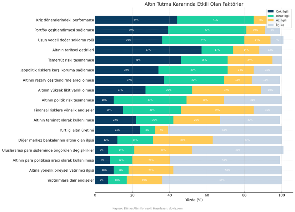 Dünya Altın Konseyi'nin anketine katılan merkez bankası yetkilileri, altın rezervlerinde gelecek döneme ilişkin tahminlerini açıkladı. Anket katılımcılarının neredeyse tamamı altın rezervlerinin artmaya devam edeceğini öngördü. Dünya Altın Konseyi’nin Merkez Bankası Altın Rezervleri Anketi sonuçlandı. 25 Şubat ile 20 Mayıs arasında 73 merkez bankası yetkilisinin katılımıyla gerçekleştirilen anketin sonuçları, merkez bankası yetkililerin rezerv planlarına ışık tuttu. Küresel merkez bankalarının altın rezervlerinin 12 ayda nasıl değişeceğine ilişkin soruya anket katılımcılarının yüzde 95’i altın rezervlerinin artacağı, yüzde 5’i ise rezervlerin değişmeyeceği şeklinde yanıt verdi. Önümüzdeki 5 yılda merkez banklarının altın rezervlerine dair soruya da yetkililerin yüzde 43’ü altın rezervlerinin önümüzdeki 5 yıl içinde artmasını bekledikleri yönünde yanıt verdi. Anket katılımcılarının hiçbiri altın rezervlerinde bir düşüş öngörmedi. Altın tutmada en önemli faktörler Katılımcılara altın tutma kararlarını etkileyen faktörler sorulduğunda ise yetkililerin yüzde 85’i kriz zamanlarında altının performansının en önemli gerekçe olduğunu söyledi. Yetkililerin yüzde 81’i altının portföy çeşitlendirici olduğu için nitelikli bir faktör olduğunu söylerken, yüzde 80’i uzun vadeli değer saklama aracı olma özelliğine vurgu yaptı. Altınları saklamak için en güvenli yer İngiltere Merkez Bankası Öte yandan anket katılımcıları, altınlarını saklamak için en güvenilir yerin İngiltere olduğunu savundu. Buna göre geçen yıl yüzde 55 ile en güvenilir ülke olarak İngiltere’yi gösteren anket katılımcıları bu yıl tahminlerini yüzde 64’e çıkarttı. [news_id:775603] [news_id:775108]