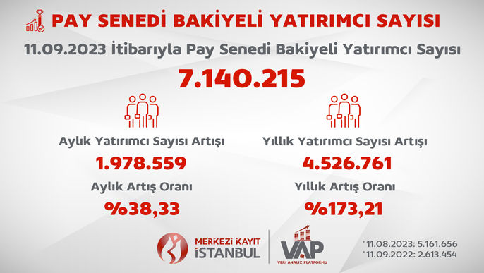 MKK verilerine göre borsada yatırımcı sayısı 7 milyon barajını aşarak yeni bir rekor kırdı. Bu rakam ise 6,5 milyon nüfusa sahip Bulgaristan'ın geçildiğini gösterdi. Merkez Kayıt Kuruluşu’nun verilerine göre borsada yatırımcı sayısı 11 Eylül 2023 tarihi itibarıyla 7 milyon 140 bin 215’e yükselerek yeni rekor seviyesine ulaştı. Borsada yatırımcı sayısı 31 Ağustos tarihinde bir önceki rekor seviyesi olan 6 milyon 257 bin 415 kişiye ulaşmıştı. Böylelikle 11 günde yatırımcı sayısındaki artış 882 bin 800 olarak gerçekleşti. Kaynak: MKK Öte yandan aylık yatırımcı sayısındaki artış 1 milyon 978 bin 559 olurken, aylık artış oranı yüzde 38,33 oldu. Yıllık bazda ise yatırımcı sayısı artışı 4 milyon 526 bin 761, artış oranı ise yüzde 173,21 olarak gerçekleşti. Bloomberg HT’nin aktardığına göre ise yaşanan artışta, Sermaye Piyasası Kurumu’nun (SPK) son düzenlemeleri sonrasında halka arzlardan daha çok tutar alabilmek amacıyla daha çok hesap açan yatırımcılar etkili oldu. [news_id:706742]