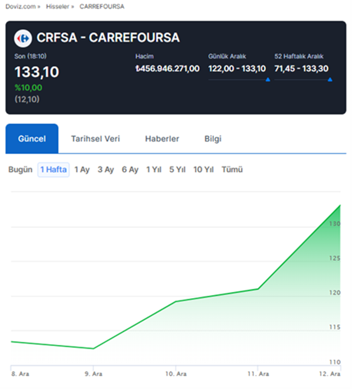 Sabancı Holding, Kamuyu Aydınlatma Platformu'na yaptığı açıklamada, CarrefourSA hisselerinin elden çıkarılmasına yönelik kesinleşmiş bir karar bulunmadığını belirtti. Sabancı Holding, Carrefoursa ile ilgili son dönemde kamuoyunda çıkan iddialara yönelik bir açıklama yayımladı. Holdingin Kamuyu Aydınlatma Platformu'na (KAP) yaptığı açıklamada, şirketin hisselerinin satışı yönünde henüz bağlayıcı bir karar alınmadığı belirtildi. Şirketten KAP’a yapılan açıklamada şunlar aktarıldı: “Çeşitli basın yayın organları, internet siteleri ve sosyal medya platformlarında, CarrefourSA Carrefour Sabancı Ticaret Merkezi A.Ş. ("CarrefourSA") paylarının satışı ve/veya şirketin faaliyetlerinin farklı şekillerde yapılandırılmasına ilişkin olarak çeşitli haber ve yorumlar yer almıştır. Sabancı Holding olarak, iştiraklerin sermaye verimliliğini, portföy getirisini ve sürdürülebilir büyümeyi esas alan, uzun vadeli değer yaratmaya odaklı bir yaklaşımı benimsemekteyiz. Bu çerçevede, portföyümüzdeki şirketler için "büyütme", "dönüştürme", "operasyonel ve finansal performansını iyileştirme" ve/veya "çıkış dahil tüm stratejik alternatiflerin değerlendirilmesi" düzenli olarak ele alınmaktadır. İlgili mecralarda yer alan CarrefourSA faaliyetlerinin bölünmesi ya da mağaza grupları bazında satışına ilişkin iddialar gerçeği yansıtmadığı gibi Şirketimizin CarrefourSA hisselerinin elden çıkarılmasına dair almış olduğu somut, bağlayıcı veya kesinleşmiş bir karar da bulunmamaktadır. Gelişmeler oldukça kamuoyu ilgili mevzuat çerçevesinde bilgilendirilecektir. Kamuoyuna saygıyla duyurulur.” Satış iddiaları hisseyi tavana taşımıştı CarrefourSA’nın süpermarket ve hipermarket operasyonlarını A101 ve Anpagross’a devretmeye yönelik görüşmeler yürüttüğüne ilişkin iddia, borsada hareketlilik yaratmıştı. CarrefourSA (CRFSA) hisseleri haftanın son işlem gününde tavan fiyata kadar yükselmişti.
