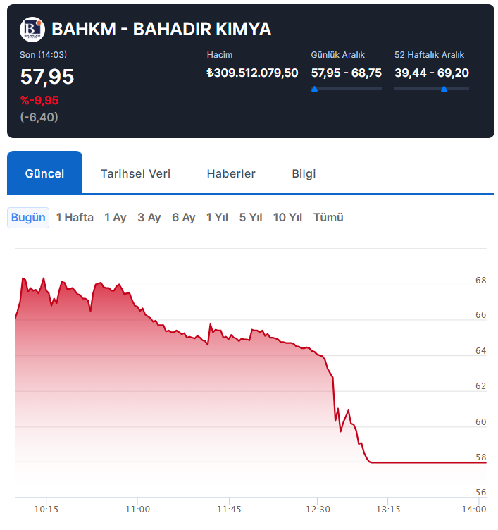 Borsa İstanbul, Bahadır Kimya'nın fabrikasında çıkan yangın sonrası şirketin borsa işlemlerini geçici olarak askıya aldı. Fabrikasında yangın çıkan Bahadır Kimya’nın pay tahtası geçici olarak işleme kapatıldı. Borsa İstanbul'dan yapılan açıklamada Bahadır Kimya'nın talebi üzerine şirketin borsa işlemlerinin geçici olarak durdurulduğu belirtildi. KAP’a yapılan açıklamada, “BAHKM.E (BAHADIR KİMYA SANAYİ VE TİCARET A.Ş.) sırası Pay Piyasası Prosedürü'nün 4.3.4.2 maddesi uyarınca şirketin talebi üzerine geçici olarak işleme kapatılmıştır.” denildi. Yangın haberinin ardından Bahadır Kimya (BAHKM) hisselerinde yüzde 10'a varan düşüş görülmüştü. Kırıkkale Valisi Makas: Herhangi bir can kaybı bulunmuyor Kırıkkale'nin Yahşihan ilçesindeki Kırıkkale 1. Organize Sanayi Bölgesi'nde çıkan fabrika yangınıyla ilgili açıklamalarda bulunan Kırıkkale Valisi Mehmet Makas ise yangında herhangi bir can kaybının olmadığını belirterek, şunları aktardı: "Öncelikle, Kırıkkalemize, hemşehrilerimize, OSB'mize geçmiş olsun dileklerimi iletiyorum. Bugün 1. OSB'miz olan Kırıkkale OSB'deki Bahadır Kimya Fabrikası'nda bir yangın ihbarı neticesinde buradayız. 70 tane hemşehrimizin çalıştığı bir fabrika. Şükürler olsun hiçbir can kaybımız yok. Yangının başlamasıyla beraber fabrikamızda gerekli tahliye işlemleri yapıldı. Yangın çevre vilayetlerimizden TÜPRAŞ'tan, Makine Kimya'dan yapılan takviyelerle ilk aşamada kontrol altına alındı. Ama henüz vahametini devam ettirmekte. İçişleri Bakanımızın talimatları doğrultusunda AFAD tarafından olaya müdahale edilmekte. An itibarıyla Ankara'dan 26 araçla takviyeye gelen kuvvetlerle birlikte yangına müdahalemiz sürüyor. Yangının çıkış sebebi henüz bilinmemekte. Gerekli araştırmalar yapıldıktan sonra sizlerle paylaşacağız. Şükürler olsun yangın genişlemeden söndürülecek, hedefimiz bu şekilde. Fakat, burada 66 fabrikamız var. Burası çok eski bir OSB. Yanaşık fabrikalaşma var. İnşallah diğer fabrikalara sıçramadan müdahaleyi bitireceğiz. Emniyetimiz, jandarmamız, AFAD, Kırıkkale'nin başta olmak üzere Çankırı, Ankara, Çorum ve Kırşehir'den takviye gelen itfaiye ekiplerimizle müdahaleye devam ediyoruz. İş adamlarımız da tankerleriyle destek veriyorlar. İnşallah en kısa sürede yangını söndürerek işlemi bitirmiş olacağız. Hamd etmemiz gereken taraf herhangi bir can kaybımızın olmaması."
