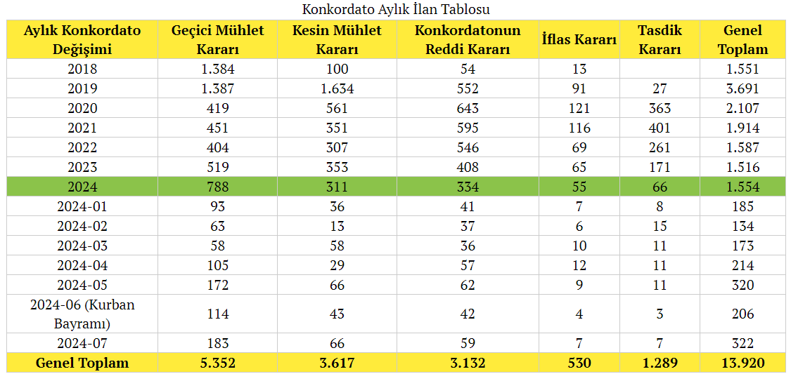Halka açık Mega Polietilen’in konkordato ilan etmesi sonrasında konkordato telaşı borsaya da sıçradı. Peki, yüksek faiz ortamında en riskli sektörler hangileri, yatırımcılar nelere dikkat etmeli? İşte detaylar.. Yüksek faiz ortamının yol açtığı maliyetlerdeki artış ve finansmana erişimde yaşanan zorluklar, konkordato başvurularını son yılların en yüksek seviyesine çıkardı. Konkordato Takip sitesinin verilerine göre geçen yıl toplam bin 516 konkordato talebi olurken 2024’ün ilk 7 ayında bu rakam bin 554'e çıktı. Mahkemelerin yılın yedi ayında iflas kararı verdiği dosya sayısı 55 olurken, geçen yılın tamamında bu sayı 65 olmuştu. Kaynak: Konkordatotakip En riskli sektör inşaat En riskli sektörler listesinde ise ilk sırayı 398 firma ile inşaat sektörü aldı. İkinci sırada tekstil bulunurken, üçüncü sırada ise akaryakıt sektörü yer aldı. En çok konkordato alan illerin başında ise İstanbul geldi. İstanbul’u Ankara izlerken üçüncü sırada ise Bursa yer aldı. Mega Polietilen konkordato ilan etmişti Son zamanlarda gündemde olan konkordato talepleri borsada da etkisini gösterdi. Borsada işlem gören Mega Polietilen üç ay süre ile konkordato ilan etti ve şirket payları işleme kapatıldı. 1,28 milyar lira piyasa değerine sahip şirketin başvurusunun ise şirketin mal varlığını korumak ve hacizler nedeniyle üretim faaliyetinin aksamaması amacıyla yapıldığı duyuruldu. [news_id:743168] Fon yöneticileri MEGAP paylarından uzak durmuş Halka açık şirketin konkordato ilan etmesi piyasaları tedirgin ederken, MEGAP hissesinde mayıs ayında zirve yapan yatırımcı ilgisinin, profesyonel portföy yöneticilerinde olmadığı görüldü. Buna göre TEFAS'ta işlem gören fonlara bakıldığında temmuz sonu itibarıyla hiçbir yatırım fonunda Mega Polietilen hissesi yer almadı. Bu sebeple uzmanlar da yatırımcıların spekülatif hareketlerden uzak durması gerektiğini belirterek, yatırım yapmadan önce profesyonel bir portföy yöneticisinden destek alınması gerekliliğine vurgu yaptı. Sektör temsilcileri uyarmıştı Öte yandan İSO Yönetim Kurulu Başkanı Erdal Bahçıvan, 2018 ve 2019 yıllarını hatırlatarak konkordatonun istismar edilmesi yoluyla birtakım acı tecrübelerin yaşandığına dikkat çekerek, bu konunun hukuki olarak daha farklı ele alınması için son bir yıldır gerek TOBB bünyesinde gerek İSO olarak Adalet Bakanlığı ile görüşmeler yaptıklarını söylemişti. Önerilerinin konkordato müessesinin reel sektör alacaklarını kapsamaması yönünde olduğuna işaret eden Bahçıvan, “Sadece kamu alacakları ve finansal alacaklar için geçerli olmalı. Bu teklifimizi 1 yıldır dile getiriyoruz. Zira çok rahat konkordato kararı verilebiliyor. Bir firma kendine konkordato ile can simidi takarken yüzlerce firma suyun altında kalabiliyor. Her firmanın da konkordato başvurusu yapması mümkün olmadığı için burada adalet ve vicdan duygunuzu etkileyen örnekler görülebiliyor. Bir firma yaşatılacaksa, karşısındaki muhatapları da yaşatılarak bu yapılmalı” ifadelerini kullanmıştı. TİM Başkanı Mustafa Gültepe ise ihracatın yüksek maliyet ile düşük kur kıskacında sıkıştığını belirterek, konkordato sayısının yıl sonunda geçen yılın iki katına çıkabileceği uyarısında bulunmuştu. [news_id:739373]