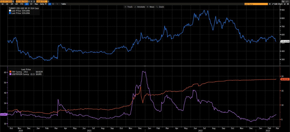 14 Mayıs’ta gerçekleşmesi planlanan seçim yaklaştıkça finansal piyasalardaki seçim hareketliliği de artış göstermeye başladı. Buna göre, ittifakların Cumhurbaşkanı adaylarını belirlemesinin ardından ortadan kalkan belirsizliklerin etkisiyle Türkiye’nin 5 yıllık risk primi (CDS) de düşüşünü hızlandırdı. Cumhur İttifakı’nın adayı Recep Tayyip Erdoğan’ın karşısına rakip olarak Millet İttifakı, Kemal Kılıçdaroğlu’nu aday gösterdi. Bu gelişme sonrasında ise finansal piyasalarda hareketlilik artış gösterdi. Bu gelişmenin ardından Türkiye’nin tahvilleri yükselişe geçerken, tahvillerdeki yükseliş sonrasında dikkat çeken bir diğer gelişme ise 5 yıllık risk priminde (CDS) yaşanan gerileme oldu. Bloomberg'in verilere göre, mayıs 2047 vadeli dolar tahvili, dolar karşısında yaklaşık 2 sent artarak bir aydan uzun bir sürenin en yüksek seviyesine ulaşırken, Eylül 2033 vadeli eurobond ise 1,2 sent yükselişle yine bir ayın en yüksek seviyesine ulaştı. Temmuz 2022’de 900 puanı aşarak 2008 sonrası en yüksek seviyeye ulaşan Türkiye'nin 5 yıllık CDS primleri ise 519 seviyesine kadar geriledi. Kaynak: Hüseyin Akseki - Twitter Türkiye’nin CDS primi 2018 yılının ortalarına kadar 300 puanın altında seyrederken Nisan 2018’den 2022 yılı ortalarına kadar 300 puanın üzerinde seyrediyordu. 14 Temmuz 2022 tarihinde ise 900 puan seviyesine ulaşarak rekor kırmıştı.