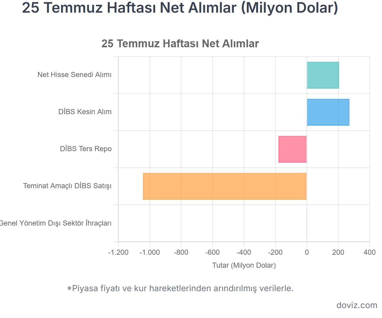 Yabancı yatırımcılar geçen hafta 205,2 milyon dolarlık hisse senedi alımı gerçekleştirdi. Türkiye Cumhuriyet Merkez Bankası (TCMB) tarafından "Haftalık Menkul Kıymet İstatistikleri" yayımlandı. Türkiye Cumhuriyet Merkez Bankası (TCMB) tarafından açıklanan haftalık menkul kıymet istatistiklerine göre yurt dışında yerleşik yatırımcılar, 25 Temmuz ile sona eren haftada piyasa fiyatı ve kur hareketlerinden arındırılmış verilerle 205,2 milyon dolar tutarında net hisse senedi alımı gerçekleştirdi. Böylece yurt dışı yerleşikler, üst üste alım pozisyonlarını korumaya devam etti. Aynı hafta içerisinde Devlet İç Borçlanma Senetleri (DİBS) piyasasında da hareketlilik gözlendi. Kesin alım işlemlerinde 271 milyon dolarlık net giriş kaydedilirken, ters repo işlemlerinde 180,3 milyon dolarlık net çıkış gerçekleşti. Teminat amaçlı DİBS işlemlerinde ise 1 milyar 42,8 milyon dolarlık satış bildirildi. Ödünç işlemi kaydedilmezken, genel yönetim dışındaki sektörlerin ihraçlarında 1,4 milyon dolarlık alım yapıldığı belirtildi. Stok verileri Söz konusu hafta itibarıyla yurt dışı yerleşik kişilerin Türkiye’deki hisse senedi stokları, piyasa değeri bazında 32 milyar 916,6 milyon dolar seviyesinde kayıtlara geçti. DİBS kesin alım stokları 14 milyar 309,4 milyon dolar, DİBS ters repo stokları 1 milyar 516,3 milyon dolar, teminat amaçlı DİBS stokları ise 2 milyar 477,1 milyon dolar olarak belirlendi. Genel yönetim dışındaki sektörlerin ihraç stokları ise 778,5 milyon dolar düzeyinde açıklandı. [news_id:780313]