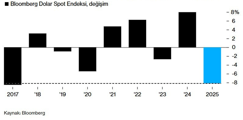 Trump'ın politikaları ve Fed belirsizliği, 2025'te doların diğer büyük para birimleri karşısında son 8 yılın en büyük kaybını yaşamasına yol açtı. Doların küresel performansını yanıstan dolar endeksi (DXY), ABD Merkez Bankası'nda (Fed) yaklaşan başkanlık değişimi ve para politikasına ilişkin belirsizliklerin etkisiyle 2017’den bu yana en kötü yıllık performansını yaşadı. Nisan ayında Donald Trump’ın “Kurtuluş Günü” olarak adlandırdığı gümrük tarifeleri sonrasında başlayan sert düşüş, Trump’ın bu yıl göreve gelecek daha güvercin bir Fed başkanı atamak için başlattığı baskı süreciyle kalıcı bir zayıflık dönemine girilmesine yol açtı. Gelişmelerin ardından dolar endeksi geçtiğimiz yıl yüzde 8,1 gerilerken, euro/dolar paritesi yüzde 13,4 oranında artış gösterdi. Dolar endeksinde yaşanan bu gerileme ise 2017’den bu yana en büyük kayıpların yaşandığına işaret etti. Doların yönünü 2026’da Fed başkanı belirleyecek Yeni yılda doların küresel performansında en kritik başlık, Fed başkanlığına kimin atanacağı olacak. Mevcut Başkan Jerome Powell’ın görev süresi mayıs ayında sona erecek. Trump, son dönemde tercih ettiği bir aday olduğunu ima etse de henüz resmi bir açıklama yapmadı. Öte yandan, mevcut Fed başkanını görevden alabileceğine yönelik açıklamaları da piyasalardaki belirsizliği artırdı. Nomura’nın döviz stratejistlerinden Yusuke Miyairi ise dolar için 2026’da en kritik başlığın Fed olacağının altını çizerek, “Ocak ve mart toplantılarından ziyade, Jerome Powell’ın görev süresi sona erdiğinde yerine kimin geçeceği daha kritik” dedi. Ulusal Ekonomi Konseyi Direktörü Kevin Hassett, uzun süredir en güçlü aday olarak görülürken, Trump’ın eski Fed yöneticisi Kevin Warsh’a da ilgi gösterdiği biliniyor. Ayrıca Fed yöneticileri Christopher Waller ve Michelle Bowman ile BlackRock yöneticisi Rick Rieder’ın isimleri de kulislerde konuşuluyor. Monex döviz işlemcisi Andrew Hazlett, “Hassett’in atanması büyük ölçüde fiyatlanmış durumda. Ancak Warsh ya da Waller gibi isimler, faiz indirimlerinde daha temkinli olabilir. Bu da dolar açısından daha olumlu bir senaryo yaratır” değerlendirmesinde bulundu. [news_id:796972] Dolar/TL ve euro/TL’de yılın ilk rakamları 2025'te dolar endeksi son 8 yılın en kötü performansını kaydederken, dolar/TL'de ise yüzde 21,5'lik artış görüldü. Küresel çapta dolarda yaşanan satış baskısına rağmen dolar/TL, kademeli yükselişiyle birlikte tarihte ilk kez 43 liranın üzerine çıktı. Euro/TL ise yeni yılın ilk seanslarında 50,56 liradan fiyatlandı. 2025 yılının başında dolar kuru 35,31 seviyesinden, euro kuru ise 36,58 seviyelerinden işlem görüyordu. [news_id:797193] [news_id:791697]