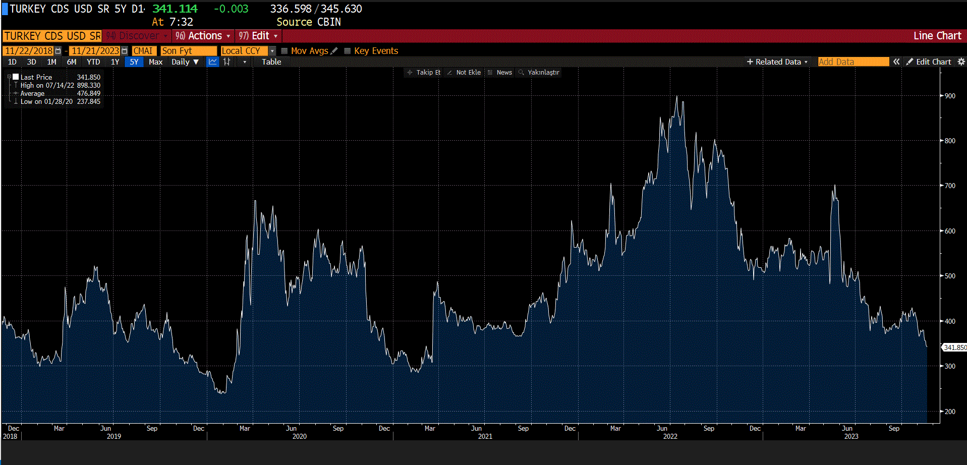 Türkiye’nin kredi risk primi (CDS), TCMB'nin kritik faiz kararı öncesinde 33 ayın en düşük seviyesini test etti. Peki, CDS'teki düşüş ne anlama geliyor? İşte detaylar.. Türkiye'nin kredi risk primi olarak adlandırılan beş yıllık kredi temerrüt takasında (CDS) gerçekleşen düşüş, TCMB'nin faiz kararı haftasında da devam ediyor. Kasım ayı başında 400 baz puanın altına gerileyen CDS, geçen hafta 350 baz puanın altını görmüştü. Türkiye'nin CDS'i dünkü işlemlerde ise 338 baz puan ile yaklaşık 33 ayın en düşük seviyesini test etti. Risk primi yeni güne de 341 seviyesinden başladı. Kaynak: Göksel Tekiner Kredi risk primindeki düşüşün ekonomi üzerindeki etkileri ise şöyle sıralanıyor: Risk algısını azaltıyor: Risk primindeki düşüş, yatırımcıların Türkiye’nin kredi riskini daha düşük görmesine ve ekonomiye karşı güvenlerinin yeniden artmasına destek oluyor. Borçlanma maliyetini azaltıyor: Türkiye’nin uluslarası piyasalarda daha düşük faiz oranlarıyla borçlanmasını sağlıyor. Döviz kurunun stabilitesine destek sağlıyor: Risk primindeki gerileme sonrasında ülkenin yerel para biriminin değerindeki oynaklık azalıyor. Yabancı yatırımcının ilgisini artırıyor: Daha düşük risk primi, yabancı yatırımcıların gelmesine katkı sağlanıyor. Finansal bir araç olan CDS ayrıca trade edilebilir bir ürün olması sebebiyle genelde yabancı yatırımcılar tarafından işlem görüyor. Bu kapsamda tahvil, döviz ve hisse senetlerindeki düşük yabancı payları gözetildiğinde CDS’ler gelişmekte olan ülkeler için önemli bir gösterge olarak kabul ediliyor. Gözler Merkez Bankası kararında CDS'teki düşüşün ardından piyasalarda iyimserlik dozunun yavaş da olsa yükselmeye başlaması sonrasında yatırımcılar ise Merkez Bankası’nın enflasyonla mücadele kapsamında perşembe günü atacağı adımı bekliyor. Türkiye Cumhuriyet Merkez Bankası (TCMB), kasım ayı faiz kararını perşembe günü saat 14.00'te açıklayacak. Piyasalar, bankanın faiz artırımında hız keserek 250 baz artış gerçekleştirmesini bekliyor. Reuters anketine katılan 21 ekonomistin tamamı yüzde 35 seviyesindeki politika faizinde artış beklerken, tahminler yüzde 37,5 ile yüzde 40 bandında yer aldı. Ankete göre politika faizinde 16 ekonomist 250 baz puan, üç ekonomist 500 baz puan, bir ekonomist 350 baz puan ve bir ekonomist ise 300 baz puan artış bekledi. Öte yandan Reuters anketinde TCMB'nin aralık ayında da faiz artışlarına devam etmesinin beklendiği görüldü. Ankette 2023 sonu faiz tahminlerinin medyanı da yüzde 40 seviyesinde oldu. [news_id:715334] Piyasalarda son durum Türk mali piyasalarında ise dün göreceli olarak sakin bir gün geride bırakıldı. Küresel risk iştahındaki artışa paralel olarak BIST 100 endeksi günü %1’in üzerinde artışla tamamlarken, dolar kuru 28,75 seviyesine ulaştı. Tahvil faizlerinde ise yabancı kurum raporlarında ön plana çıkan Türkiye'nin TL cinsi tahvillerine yönelik alım önerisine paralel 2 yıllık gösterge tahvilin bileşik faizi %42 seviyesini test etmesinin ardından %40 seviyesine yakın yatay bir seyir izledi. [news_id:714082]