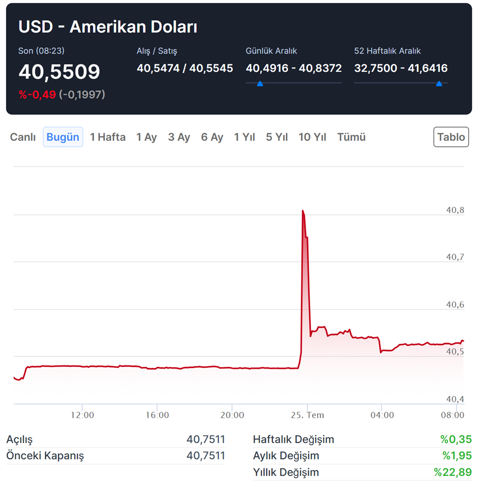 TCMB’nin faiz kararının ardından gözlerin çevrildiği dolar/TL’de gece saatlerinde hareketlilik arttı. Uzmanlar ise bu hareketliliğin hatalı algoritmik işlemlerden kaynaklanmış olabileceğini açıkladı. Türkiye Cumhuriyet Merkez Bankası’nın faiz kararını açıklamasının ardından piyasalarda gözler dolara çevrilmişti. Dolar/TL gün içerisinde 40,47 TL bandında yatay bir performans sergiledikten sonra saat 23.30 itibarıyla ani bir hareketle 40,9521 puana kadar çıktı. Finans piyasalarında ekonomi paylaşımlarıyla bilinen e507 adlı kullanıcı ise gece saatlerinde yaşanan yükselişe ilişkin sosyal medya hesabından açıklamada bulundu. Dolar kurundaki ani hareketin arkasında algoritmik hatalı işlemlerin olabileceğini bildiren e507, şunları aktardı: “Dolar/TL kuru bazı platformlarda 41, bazılarında 43 üstü işlem gördü. Çok düşük tutarlar, bir haber de yok. Algoların hatalı işlemleri olabilir... Şimdi 40,55 devam.” [news_id:779099] [news_id:732358]