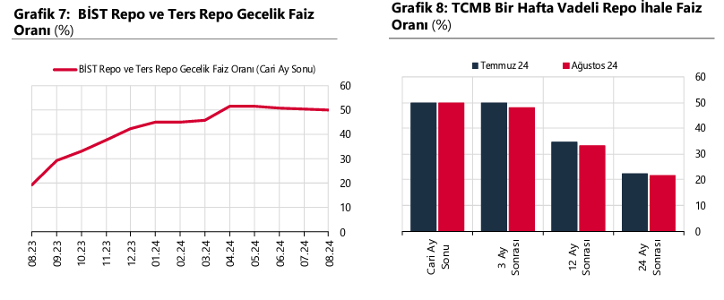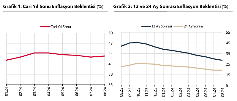 Türkiye Cumhuriyet Merkez Bankası Piyasa Katılımcıları Anketi'ne göre ekonomistlerin yıl sonu dolar kuru tahmini 37,28 lira, enflasyon beklentisi ise yüzde 43,31 oldu. Merkez Bankası (TCMB), Piyasa Katılımcıları Anketi'nin sonuçlarını yayımladı. Buna göre ankette, katılımcıların 2024 yıl sonu dolar/TL beklentisi 37,28 TL olurken, 12 ay sonrası döviz kuru beklentisi ise aynı anket döneminde 42,03 TL olarak belirlendi. Bir önceki dönemde beklentiler sırasıyla 37,37 ve 41,52 TL olmuştu. Kaynak: TCMB - Piyasa Katılımcıları Anketi Faiz beklentisi Katılımcıların BİST Repo ve Ters-Repo Pazarı’nda oluşan cari ay sonu gecelik faiz oranı beklentisi de yılın sekizinci anketinde yüzde 50 olarak belirlendi. TCMB bir hafta vadeli repo ihale faiz oranı cari ay sonu beklentisi ise aynı anket döneminde yüzde 50,00 seviyesinde sabit kaldı. Kaynak: TCMB - Piyasa Katılımcıları Anketi Enflasyon beklentisi Katılımcıların cari yıl sonu tüketici enflasyonu (TÜFE) beklentisi de bu anket döneminde yüzde 43,31 seviyesinde ölçüldü. Bir önceki ankette bu beklenti yüzde 42,95 olarak belirlenmişti. Öte yandan 12 ay sonrası TÜFE beklentisi yüzde 28,71, 24 ay sonrası TÜFE beklentisi ise sırasıyla yüzde 19,32 ve yüzde 19,30 olarak belirlendi. Kaynak: TCMB - Piyasa Katılımcıları Anketi TCMB ise yılın 3. Enflasyon Raporu'nun sunumunda 2024 yıl sonu enflasyon tahminini değiştirmediğini belirterek, 2024 sonu hedefini yüzde 38’de, 2025 ve 2026 sonu hedeflerini ise sırasıyla yüzde 14 ve yüzde 9 seviyesinde sabit bırakmıştı. [news_id:742078] [news_id:742848]
