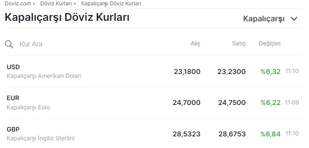 Döviz kurlarında uzun süredir devam eden yükseliş seçimlerin ardından hızlanırken, yeni kabinenin açıklanmasıyla ortodoks politikalara dönüş yapılacağı ve döviz kurlarının üzerindeki baskının azalacağı beklentileri de artış gösterdi. Buna göre, Dolar/TL bugün saat 11.09 itibarıyla 23,04 seviyesinden işlem görürken, Kapalıçarşı'da 23,20 seviyesinden alıcılarıyla buluşuyor. Euro/TL ise 24,75 seviyesinden işlem görürken, Kapalıçarşı’da da 24,75 seviyesinden satılıyor. Sterlin/TL ise 28,65 seviyesine ulaşarak rekor tazelerken, Kapalıçarşı’da 28,55 seviyelerinden alıcılarıyla buluşuyor. Buna göre bankalararası kurda dolar/tl, euro/tl ve sterlin/tl sırasıyla %6,86, %7,06, %6,52 yükseliş yaşıyor. Kaynak: Doviz.com - Kapalıçarşı Döviz Kurları Borsada yön yukarı Döviz kurlarının sert yükseliş kaydettiği yeni günde Borsa İstanbul'da da yükseliş devam etti. Buna göre BIST 100 endeksi, açılışta yüzde 2,36 oranında yükselişle 5515 puana çıktı. Gram altın yeni zirvesine çıktı Altının gram fiyatı, ons altındaki kayba rağmen, dolarTL'deki hızlı yükselişin desteğiyle tüm zamanların en yüksek seviyesini 1461 TL'ye taşıdı. Ons altının ve dolar/TL'nin fiyatına göre hesaplanan gram altın, yüzde 6,72 oranında primle 1452 TL'de alıcı buluyor. Ons altın fiyatı ise, şu sıralarda yüzde 0,23 oranında düşüşle 1958 dolarda işlem görüyor. Tıklayın: Yabancı kurumların beklentisi ne yöndeydi?