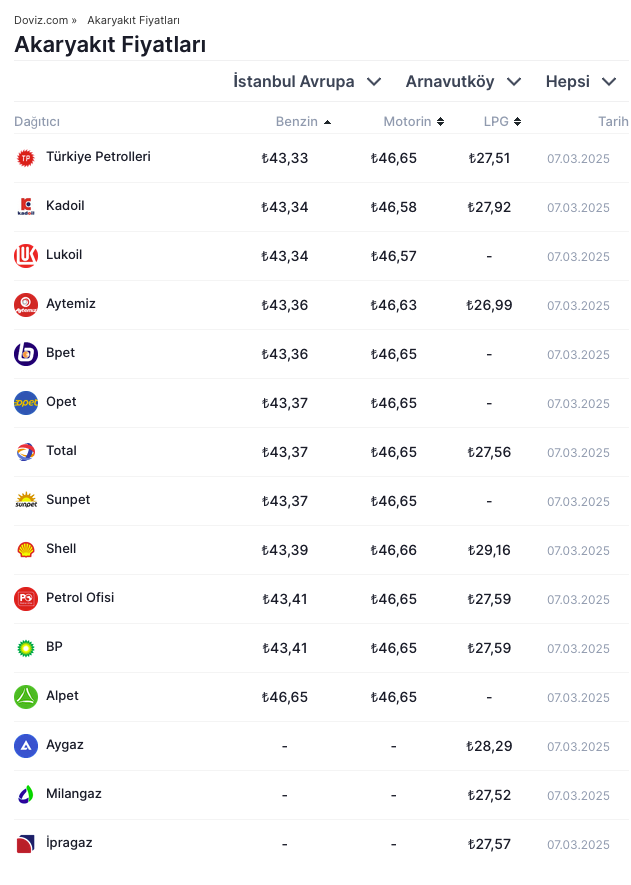 Küresel petrol piyasalarındaki hareketlilik ve döviz kurlarındaki dalgalanmalar akaryakıt fiyatları üzerinde etkili olmaya devam ediyor. 4 Mart'ta benzin fiyatlarında yaşanan indirimin ardından 7 Mart 2025 tarihinde yeni bir indirim daha yapıldı. Gece yarısından itibaren de motorin fiyatlarında da indirim uygulanması bekleniyor. Akaryakıt fiyatlarında dalgalanma devam ederken, özellikle benzin fiyatlarında iki kademeli bir indirim gerçekleşti. 4 Mart tarihinde benzine gelen 1 lira 15 kuruşluk indirimin ardından, 7 Mart tarihinde ikinci bir fiyat düşüşü yaşandı. Bu yeni indirimle birlikte benzin fiyatlarında toplam 2 lira 6 kuruşluk bir azalma oldu. Motorine Beklenen Fiyat Düşüşü Benzin fiyatlarındaki indirimin ardından motorin fiyatlarında da bir düşüş bekleniyor. 8 Mart itibariyla motorin fiyatlarında 1 lira 35 kuruşluk indirim uygulanacak. Geçtiğimiz Şubat ayında motorin fiyatlarında yaşanan zam ve indirim dalgalanmalarının ardından, yeni indirimler gıda ve giyim fiyatlarının seyrini de yeniden değiştirebilir. Güncel Akaryakıt Fiyatları (7 Mart 2025) İstanbul Avrupa Yakısı: Benzin 43.41 TL/LT, Motorin 46.65 TL/LT, LPG 27.59 TL/LT Anadolu Yakısı: Benzin 43.26 TL/LT, Motorin 46.54 TL/LT, LPG 26.99 TL/LT Ankara Benzin 43.96 TL/LT, Motorin 47.38 TL/LT, LPG 27.49 TL/LT İzmir Benzin 44.33 TL/LT, Motorin 47.74 TL/LT, LPG 27.34 TL/LT dovizcom'da akaryakıt fiyatlarını takip etmek için tıklayın! Geçtiğimiz ayda akaryakıt fiyatlarında dikkate değer artışlar görülmüştü. 5 Şubat'ta LPG fiyatları 1 lira 10 kuruş artmış, 22 Şubat'ta motorine 1 lira 45 kuruş zam gelmiş fakat bu zam 27 Şubat'taki 1 lira 43 kuruşluk indirimle kısmen geri çekilmişti. 4 Mart gecesi benzine uygulanan 1 lira 15 kuruşluk indirimin ardından bugün bir indirim daha yaşanması, fiyatların yeniden dengelenmesine yol açtı. [news_id:764832]