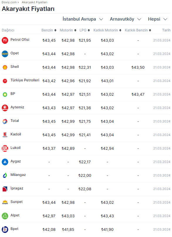 Brent petrolün beş ayın en yüksek seviyesine çıkması ve dolar kurundaki artışın devam etmesi sonrasında benzin ve motorine 5 gün aranın ardından ikinci kez zam geldi. Brent petrol, 86 doları aşarak beş ayın en yüksek seviyesine ulaşırken; dolar/TL ise bugün açıklanacak kritik faiz kararı öncesinde 32,41 TL’ye çıkarak rekor tazeledi. Petrol ve dolardaki artışın ortasında ise benzin ve motorine 5 gün aranın ardından ikinci kez zam geldi. Buna göre gece saatlerinden itibaren geçerli olacak şekilde benzin grubunda 1,36 TL, motorin grubunda ise 1,12 TL'lik fiyat artışı pompa fiyatlarına yansıtıldı. Zam sonrası güncel akaryakıt pompa fiyatlarına göre; İstanbul'da motorin litre fiyatı 43,44 liradan, Benzinin litresi ise ortalama 42,98 liradan satılmaya başlandı. İstanbul Avrupa yakasında dağıtım şirketi bazlı akaryakıt fiyatları ise şöyle listelendi: Kaynak: Doviz.com - Akaryakıt Fiyatları Akaryakıt fiyatları nasıl hesaplanıyor? Türkiye'de benzin ve motorin fiyatları hesaplanırken; Gümrüksüz rafineri fiyatına ÖTV ve EPDK payının eklenmesiyle KDV hariç Rafineri satış fiyatı bulunuyor. Gümrüksüz Rafineri Fiyatı hesaplanırken ise, Akdeniz-İtalyan piyasasında yayınlanan günlük CIF Akdeniz ürün fiyatları ve günlük Dolar kuru takip edilerek, belli bir fiyat değişim farkında gümrüksüz rafineri tavan satış fiyatı elde ediliyor. [news_id:727977] [news_id:727984]
