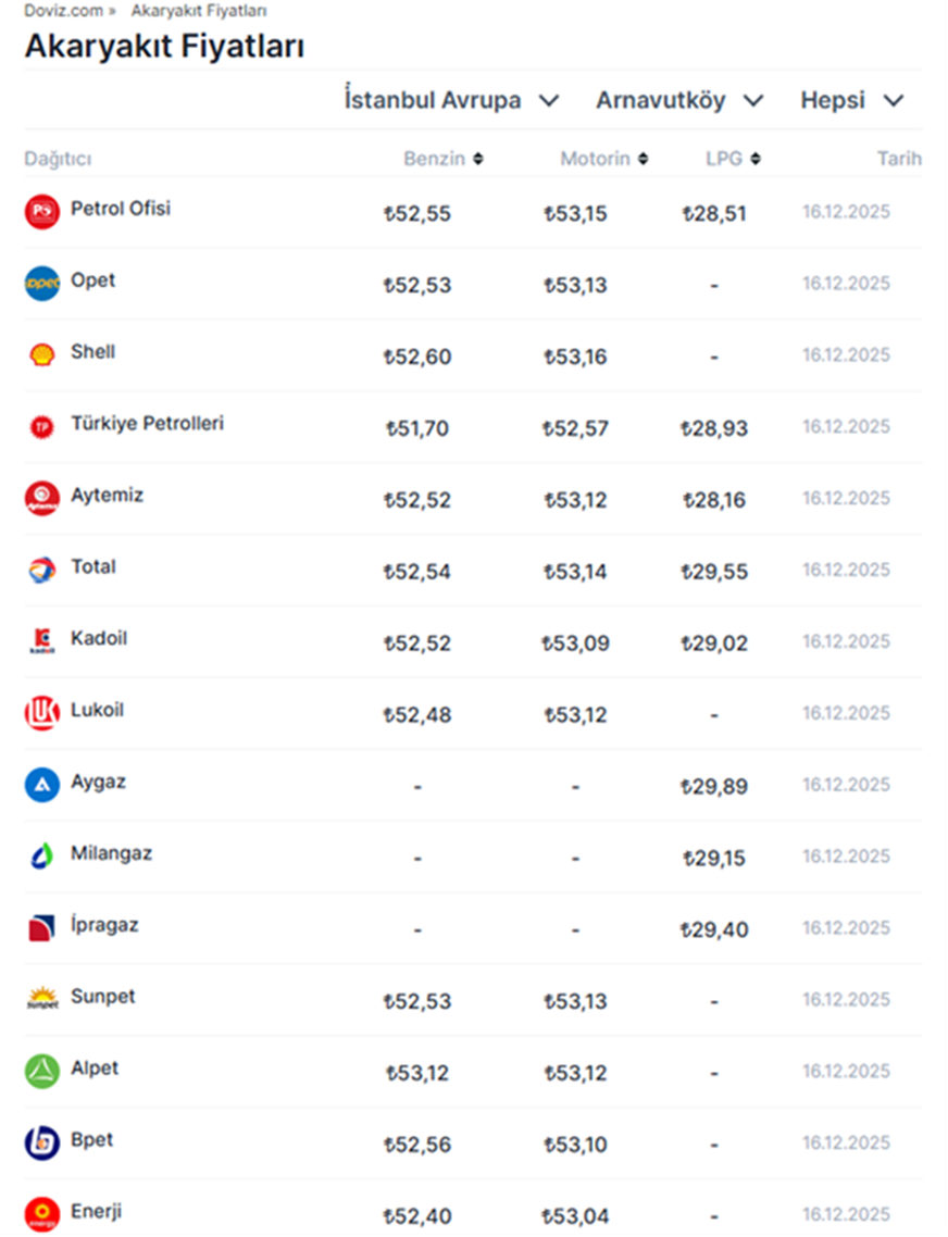 Petrol fiyatlarındaki gerilemenin etkisiyle bugün indirim gerçekleşen benzin fiyatlarına yarından itibaren yeni bir indirim daha uygulanması bekleniyor. Dün 61,30 dolara kadar yükselen Brent petrolün varil fiyatı bugün 5 Mayıs’tan bu yana ilk kez 60 doların altına geriledi. Fiyatlardaki düşüşte, Rusya ile Ukrayna arasında bir barış anlaşmasına varılabileceğine dair iyimserlik etkili oldu. Son olarak ABD Başkanı Donald Trump, Ukrayna-Rusya Savaşı ile ilgili Avrupalı liderlerle kapsamlı görüşmeler yaptığını belirterek, diplomatik sürecin "temkinli ama olumlu" bir seyir izlediğini söylemişti. Trump'ın açıklamaları ise ABD'li yetkililerin Berlin'de yürütülen temaslarda Ukrayna için NATO'nun 5. maddesine benzer güçlü güvenlik garantileri içeren bir "barış paketi" üzerinde önemli ilerleme sağlandığını duyurmasının ardından gelmişti. Akaryakıtta indirim furyası Petrol fiyatlarında yaşanan geri çekilme sonrası geçtiğimiz hafta motorine, bugün gece saatlerinden itibaren ise benzine indirim gelmişti. Ancak, uluslararası piyasada ürün fiyatında yaşanan geri çekilmenin sürmesi nedeniyle benzine yarından itibaren yeni bir indirim daha gelmesinin beklendiği bildirildi. Petros’un aktardığına göre bugün 1,95 TL indirim uygulanan benzine yarından itibaren geçerli olacak şekilde 0,83 TL indirim yapılacak. Gerçekleşmesi beklenen indirim öncesinde benzin fiyatları İstanbul’da 52,55 TL’ye, Ankara’da 53,40 TL’ye, İzmir’de 53,74 TL’ye satılıyor. Motorin ve LGP fiyatlarında ise herhangi bir değişiklik öngörülmüyor. Akaryakıt fiyatları nasıl hesaplanıyor? Türkiye'de benzin ve motorin fiyatları hesaplanırken; Gümrüksüz rafineri fiyatına ÖTV ve EPDK payının eklenmesiyle KDV hariç Rafineri satış fiyatı bulunuyor. Gümrüksüz Rafineri Fiyatı hesaplanırken ise Akdeniz-İtalyan piyasasında yayınlanan günlük CIF Akdeniz ürün fiyatları ve günlük dolar kuru takip edilerek, belli bir fiyat değişim farkında gümrüksüz rafineri tavan satış fiyatı elde ediliyor. [news_id:795409]