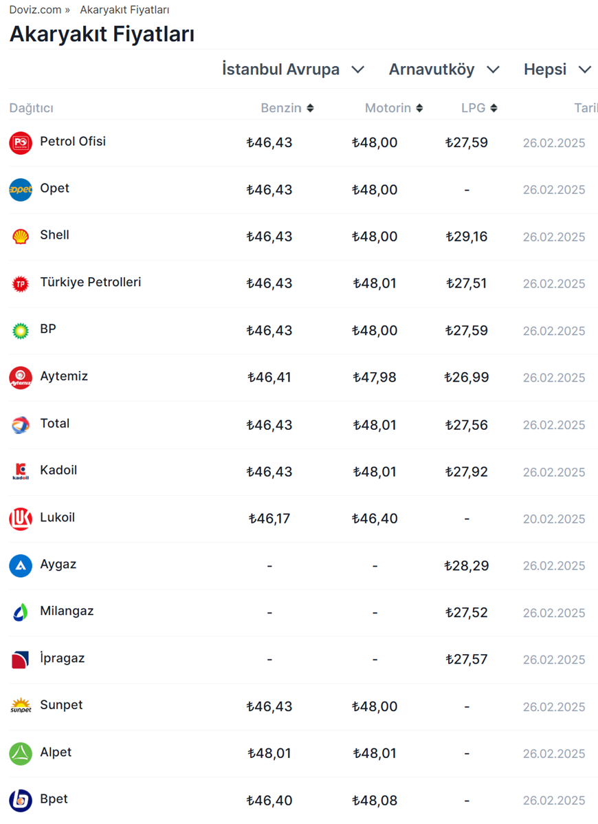 Geçtiğimiz hafta zamlanan motorin fiyatlarına yarından itibaren geçerli olacak şekilde indirim gelmesi bekleniyor. Brent petrol fiyatlarındaki dalgalı seyir akaryakıt fiyatlarında da hareketliliği artırdı. Buna göre son olarak motorine geçtiğimiz hafta 1,44 TL zam yapılmıştı. Motorine gelen zammın ardından motorin-benzin makası da 1,50 TL’nin üzerine kadar çıkmıştı. Açılan makasın ardından Doviz.com'un sektör temsilcilerinden edindiği bilgiye göre, yarından itibaren geçerli olacak şekilde motorinde 1,40 TL'lik indirim gerçekleşmesi bekleniyor. Beklenen indirim öncesinde güncel akaryakıt pompa fiyatlarına göre motorin İstanbul’da 48 TL’den, Ankara’da 48,71 TL’den, İzmir’de 49,08 TL’den, Antalya'da 49,73 TL’den, Diyarbakır'da ise 50,06 TL’den satılıyor. Dağıtım şirketi bazlı akaryakıt fiyatları ise şöyle listeleniyor: Kaynak: Doviz.com Akaryakıt fiyatları nasıl hesaplanıyor? Türkiye'de benzin ve motorin fiyatları hesaplanırken Gümrüksüz rafineri fiyatına ÖTV ve EPDK payının eklenmesiyle KDV hariç Rafineri satış fiyatı bulunuyor. Gümrüksüz Rafineri Fiyatı hesaplanırken ise Akdeniz-İtalyan piyasasında yayınlanan günlük CIF Akdeniz ürün fiyatları ve günlük Dolar kuru takip edilerek, belli bir fiyat değişim farkında gümrüksüz rafineri tavan satış fiyatı elde ediliyor.