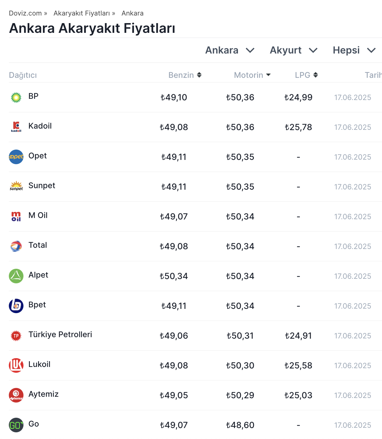 Döviz kurundaki oynaklık ve brent petrol fiyatlarındaki yükseliş, akaryakıt fiyatlarına yeni zam olarak yansıdı. 17 Haziran 2025 itibarıyla motorin fiyatına gece yarısından sonra 1 lira 75 kuruşluk zam uygulandı ve motorinin litre fiyatı birçok kentte 50 TL sınırını geçti. Döviz kuru ve petrol piyasalarında yaşanan dalgalanmalarla birlikte, motorinin litre fiyatına 17 Haziran 2025 itibarıyla gece yarısından geçerli olmak üzere 1 lira 75 kuruşluk zam yansıtıldı. Bu artışın ardından motorin fiyatları pek çok şehirde 50 TL'nin üzerine çıktı. İstanbul, Ankara ve İzmir gibi büyük şehirlerde motorin fiyatlarındaki yeni seviyeler dikkat çekti. İstanbul, Ankara ve İzmir’de Güncel Akaryakıt Fiyatları Akaryakıt fiyatları kentlere göre farklılık göstermeye devam ederken, İstanbul’un Avrupa Yakası’nda benzin fiyatı 48.44 TL, motorin 49.51 TL ve LPG 25.09 TL seviyelerine ulaştı. Anadolu Yakası’nda ise benzin fiyatı 48.29 TL, motorin 49.39 TL ve LPG 24.49 TL olarak ölçüldü. Başkent Ankara’da benzin 49.10 TL, motorin 50.36 TL ve LPG 24.99 TL seviyelerinde satışa sunuldu. İzmir’deki fiyatlar ise benzinde 49.44 TL, motorinde 50.70 TL ve LPG’de 24.94 TL olarak güncellendi. Akaryakıt Fiyatları Nasıl Hesaplanıyor? Türkiye’de akaryakıt fiyatlarının hesaplanma yöntemi, Akdeniz piyasasında günlük olarak yayımlanan CIF Akdeniz ürün fiyatları ile döviz kuru verileri temel alınarak uygulanıyor. Bu veriler doğrultusunda belirlenen gümrüksüz rafineri fiyatına, Özel Tüketim Vergisi ve Enerji Piyasası Düzenleme Kurumu payı ekleniyor. Ardından Katma Değer Vergisi ilave edilerek nihai pompa satış fiyatı ortaya çıkıyor.