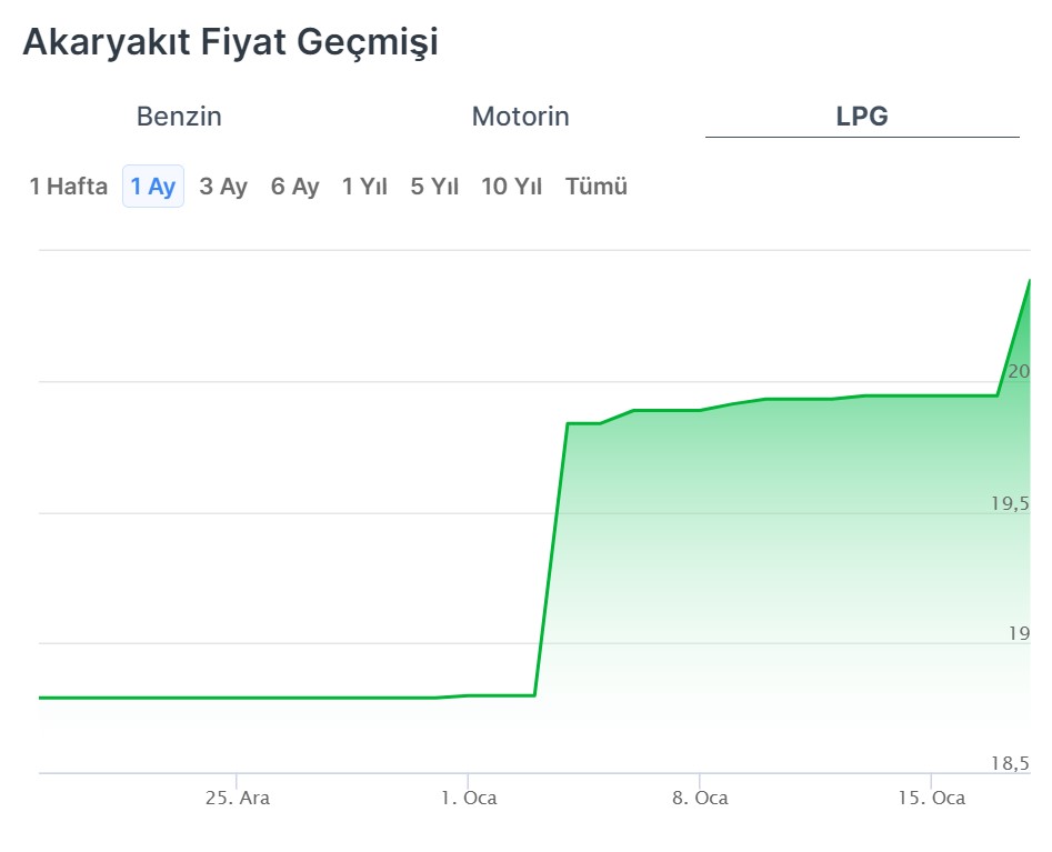 LPG’ye dün gelen zammın ardından yarından itibaren geçerli olacak şekilde motorinde de fiyat artışına gidilmesi bekleniyor. Yeni yılın ilk günlerinde Türkiye İstatistik Kurumu’nun (TÜİK) 2023’ün ikinci yarısı için açıkladığı Yİ-ÜFE oranı yüzde 25,6 olmuştu. Bu da akaryakıttan alınan ÖTV oranının aynı oranda yükselmesine neden olmuştu. Akaryakıtta yeni yılın başında uygulanan ÖTV zamlarının ardından ilk hareketlilik ise dün LPG zammıyla başlamıştı. Buna göre LPG fiyatlarında 44 kuruşluk artışa gidilmişti. Böylelikle İstanbul Avrupa yakasında ortalama LPG fiyatı 19,55 TL’den 20,39 TL’ye çıkmıştı. Kaynak: Doviz.com – Akaryakıt Fiyatları LPG zammının ardından ise motorin fiyatlarına 20 Ocak 2024 tarihinden itibaren (00.01) geçerli olacak şekilde 1,15 TL'lik zam gelmesinin beklendiği bildirildi. Benzin ve LPG grubunda ise herhangi bir fiyat değişikliği bulunmuyor. Akaryakıt fiyatları nasıl hesaplanıyor? Türkiye'de benzin ve motorin fiyatları hesaplanırken; Gümrüksüz rafineri fiyatına ÖTV ve EPDK payının eklenmesiyle KDV hariç Rafineri satış fiyatı bulunuyor. Gümrüksüz Rafineri Fiyatı hesaplanırken ise Akdeniz-İtalyan piyasasında yayınlanan günlük CIF Akdeniz ürün fiyatları ve günlük dolar kuru takip edilerek, belli bir fiyat değişim farkında gümrüksüz rafineri tavan satış fiyatı elde ediliyor.