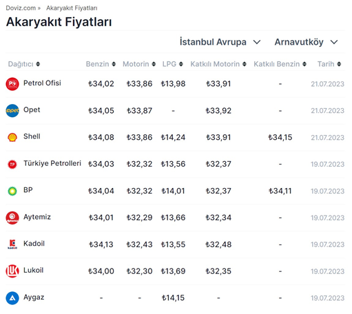 Motorin fiyatlarına gece yarısı itibarıyla 1,55 liralık yeni bir zam geldi. Dolar kurunun yükseliş ivmesi ve brent petrolün güçlü seyri sonrasında akaryakıt fiyatlarında da hareketlilik arttı. Buna göre, 21 Temmuz Cuma günü gece saatleri itibarıyla motorine 1,55 lira zam yapıldı. Benzin ve LPG fiyatlarında ise herhangi bir değişiklik olmadı. Akaryakıt fiyatlarındaki bu değişimin ardından güncel pompa fiyatlarına göre; İstanbul'da motorin litre fiyatı 33,86 liradan, Benzinin litresi 34,04 liradan, LPG'nin litre fiyatı ise 14,01 liradan satılıyor. Kaynak: Doviz.com – Akaryakıt Fiyatları