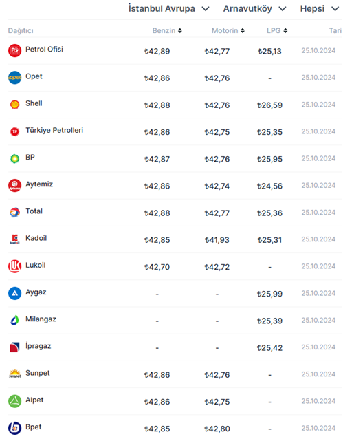 Akaryakıta salı günü gelen indirimlerin ardından bugün motorin fiyatlarında artışa gidildi. İşte zam sonrası 7 ilde güncel motorin fiyatları.. Salı günü benzin ve motorin fiyatlarında yapılan indirimlerin ardından gece saatleri itibarıyla motorin fiyatlarında artış meydana geldi. Buna göre motorinin litresine ortalama 85 kuruş zam yapıldı. Zam sonrası motorinin litresi İstanbul Avrupa Yakası'nda ortalama 42,77 TL, Ankara'da 43,31 TL, Bursa’da 43,36 TL, İzmir'de 43,81 TL, Adana'da 44,03 TL, Antalya'da 44,22 TL ve Diyarbakır'da 44,33 TL olarak belirlendi. Dağıtım şirketi bazlı akaryakıt fiyatları ise şöyle listelendi: Kaynak: Doviz.com - Akaryakıt Fiyatları Akaryakıt fiyatları nasıl hesaplanıyor? Türkiye'de benzin ve motorin fiyatları hesaplanırken; Gümrüksüz rafineri fiyatına ÖTV ve EPDK payının eklenmesiyle KDV hariç Rafineri satış fiyatı bulunuyor. Gümrüksüz Rafineri Fiyatı hesaplanırken ise, Akdeniz-İtalyan piyasasında yayınlanan günlük CIF Akdeniz ürün fiyatları ve günlük dolar kuru takip edilerek, belli bir fiyat değişim farkında gümrüksüz rafineri tavan satış fiyatı elde ediliyor. [news_id:750051]