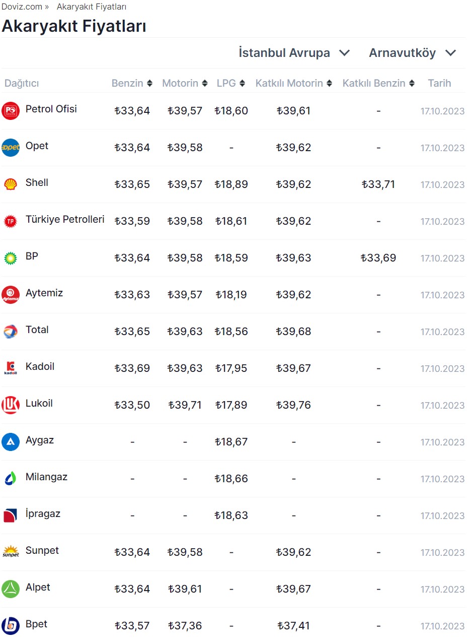 Motorin fiyatlarına gece yarısı itibarıyla 2,26 TL zam geldi. Böylelikle benzin ve motorin arasında son zamanlarda kapanan makas yeniden 6 TL'ye ulaştı. Brent petrol ve döviz kurundaki yükseliş sonrasında akaryakıt fiyatlarında da hareketlilik arttı. Buna göre, 17 Ekim Salı günü gece saatleri itibarıyla motorine 2,26 TL zam yapıldı. Benzin ve LPG fiyatlarında ise herhangi bir değişiklik olmadı. Akaryakıt fiyatlarındaki bu değişimin ardından güncel pompa fiyatlarına göre; İstanbul'da motorin litre fiyatı 39,60 liradan, Benzinin litresi 33,61 liradan, LPG'nin litre fiyatı ise 18,72 liradan satılıyor. Kaynak: Doviz.com – Akaryakıt Fiyatları ***İl, ilçe ve dağıtım şirketi bazlı güncel akaryakıt fiyatlarına akaryakıt sekmemizden ulaşabilirsiniz. [news_id:711109] Gözler petrol fiyatlarında Avrupa Merkez Bankası (ECB) Başkanı Christine Lagarde, Euro Bölgesi maliye bakanlarına İsrail-Hamas çatışmalarının enflasyonist bir etkisi olup olmayacağını görmek için petrol fiyatlarına bakacaklarını söyledi. Kaynaklar Lagarde’ın pazartesi günü Lüksemburg’da blok yetkililerinin basına kapalı toplantısında konuştuğunu belirtirken, ECB sözcüsü konu hakkında yorum yapmadı. Kaynaklara göre, ABD Hazine Bakanı Janet Yellen’ın da katıldığı toplantıda Lagarde, petrol fiyatlarındaki artış riskinin hem Avrupa’yı hem de ABD’yi vuracağını söyledi. Çatışmaların patlak vermesi piyasalarda sessiz bir tepkiyle karşılansa da bazı analistler gerilimin tırmanmasının petrolü varil başına 100 dolara çıkarabileceğini öngörüyor. [news_id:711042]