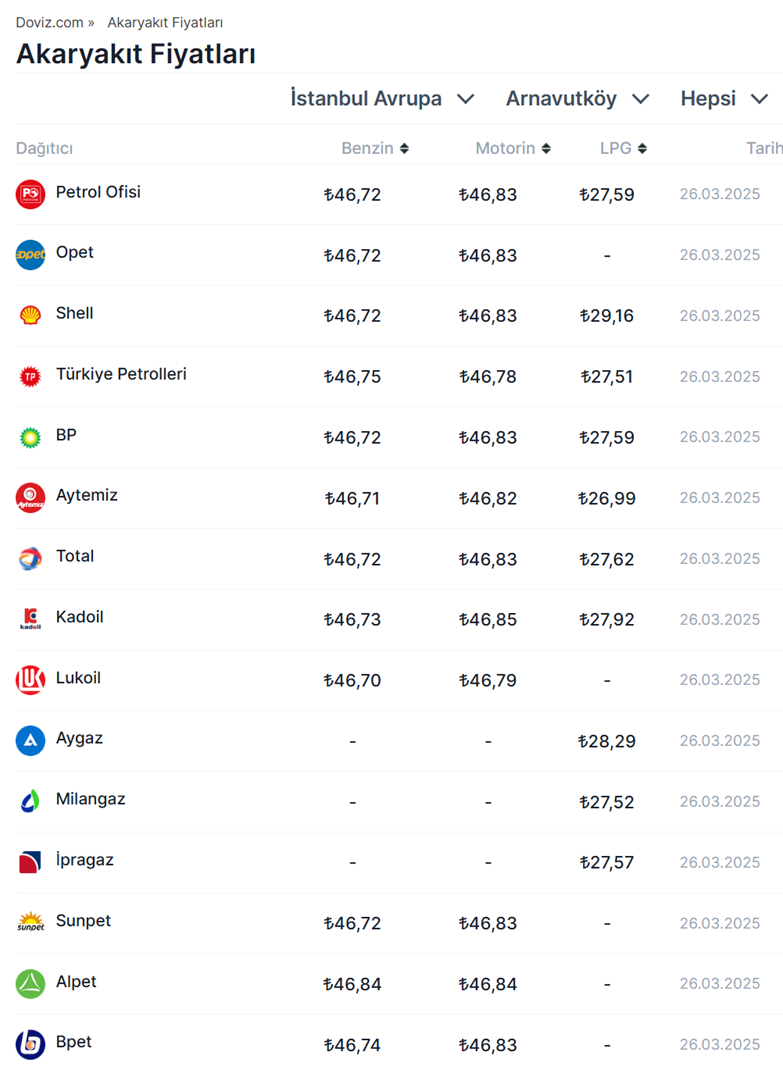 Benzin fiyatlarında dün gerçekleşen fiyat artışının ardından gece saatleri itibarıyla motorine de zam geldi. Döviz kurunda yaşanan yükseliş, benzinin ardından motorine de zam olarak yansıdı. Buna göre son olarak benzinin litresine dün 1 lira 48 kuruş zam gelmişti. Benzine gelen zammın ardından motorin fiyatlarında ise bugünden itibaren geçerli olmak üzere 1 lira 42 kuruşluk fiyat artışı gerçekleşti. Zammın ardından İstanbul Avrupa yakasında motorinin litresi 46,83 lira, Ankara'da 47,57 lira, İzmir'de 47,93 lira, Antalya'da 48,65 lira, Diyarbakır'da ise 48,95 lira oldu. Benzinin litresi de İstanbul Avrupa yakasında 46,72 liradan, Ankara'da 47,29 liradan, İzmir'de 47,65 liradan, Antalya'da 48,41 liradan, Diyarbakır'da 48,62 liradan satılmaya devam etti (Diğer il, ilçe ve dağıtım şirketi bazlı güncel fiyatlar ise akaryakıt sekmemizde listeleniyor). Akaryakıt fiyatları nasıl hesaplanıyor? Türkiye'de benzin ve motorin fiyatları hesaplanırken, Gümrüksüz rafineri fiyatına ÖTV ve EPDK payının eklenmesiyle KDV hariç Rafineri satış fiyatı bulunuyor. Gümrüksüz Rafineri Fiyatı hesaplanırken ise Akdeniz-İtalyan piyasasında yayınlanan günlük CIF Akdeniz ürün fiyatları ve günlük dolar kuru takip edilerek, belli bir fiyat değişim farkında gümrüksüz rafineri tavan satış fiyatı elde ediliyor.