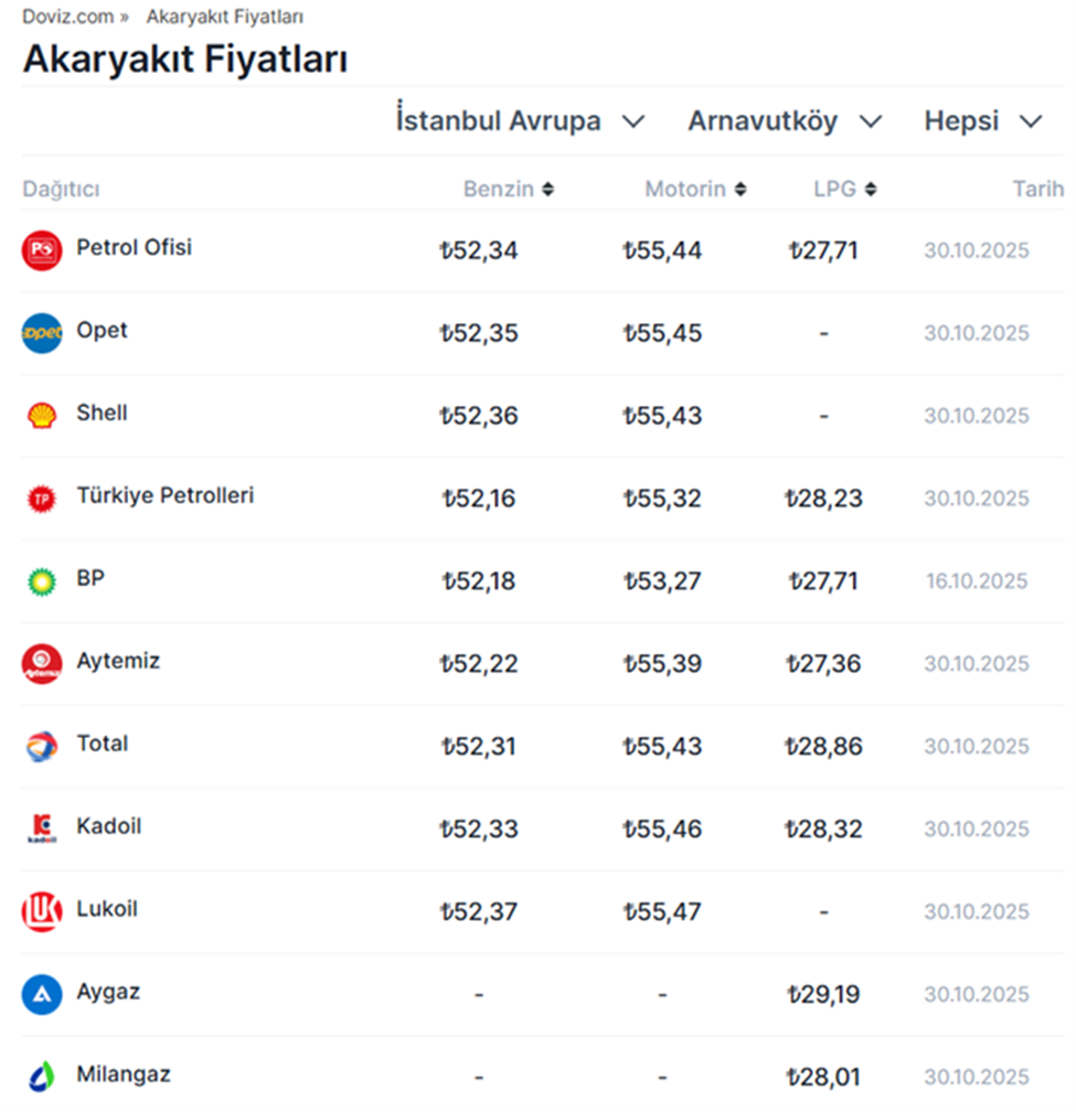 Motorine gelen son zammın ardından yarından itibaren geçerli olacak şekilde benzin grubunda fiyat artışı gerçekleşmesi bekleniyor. Brent petrol ve dolar kurunun yükselişinin ardından akaryakıt fiyatlarında hareketlilik hızlandı. Son olarak geçtiğimiz hafta cuma günü motorine 3,04 TL zam yapılmıştı. Motorine gelen zammın ardından motorin ve benzin makası ise 3 TL’nin üzerine çıkmıştı. Açılan makasın ardından benzine yarından itibaren geçerli olacak şekilde 1,13 TL'lik zam gelmesinin beklendiği bildirildi. Benzin fiyatlarına gelmesi beklenen zam öncesinde güncel pompa fiyatlarına göre; İstanbul'da motorinin litre fiyatı 55,44 TL’den, benzinin litre fiyatı 52,34 TL’den, LPG'nin litre fiyatı ise 27,71 TL’den satılıyor. Dağıtım şirketi bazlı akaryakıt fiyatları ise şöyle listeleniyor: Akaryakıt fiyatları nasıl hesaplanıyor? Türkiye'de benzin ve motorin fiyatları hesaplanırken; Gümrüksüz rafineri fiyatına ÖTV ve EPDK payının eklenmesiyle KDV hariç Rafineri satış fiyatı bulunuyor. Gümrüksüz Rafineri Fiyatı hesaplanırken ise Akdeniz-İtalyan piyasasında yayınlanan günlük CIF Akdeniz ürün fiyatları ve günlük dolar kuru takip edilerek, belli bir fiyat değişim farkında gümrüksüz rafineri tavan satış fiyatı elde ediliyor. [news_id:789819]