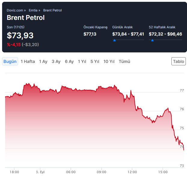 Petrol fiyatları zayıf talebin arza yetmeyeceği endişesiyle düşüşünü hızlandırdı. Bu kapsamda brent petrol fiyatı bugün 74 doların altına inerek son 9 ayın en düşük seviyesine geriledi. Brent petrol eylül ayına kayıpla başladı. Buna göre brent petrol fiyatı bugün TSİ 17.05'te yüzde 4,15 kayıpla 73,93 dolara indi. ABD ham petrolü (WTI) fiyatı da benzer şekilde yüzde 4,65 kayıpla 70,08 dolar seviyesinden işlem gördü. Son olarak Libya Temsilciler Meclisi (TM) Başkanı Akile Salih, görevden alınan Merkez Bankası Başkanı Sıddık el-Kebir'in görevine iade edilinceye kadar petrol ve gaz kuyularında üretimin kapalı kalacağını söylemişti. Bu kararın ardından Libya'da petrol üretiminin yarıdan fazla azaldığı bildirildi. Petrol üretimini kısıtlayan bu gelişmeye rağmen küresel çapta petrol arzının yüksek kalmaya devam etmesi ve talep görünümünün zayıflaması ise petrol fiyatlarındaki düşüşün derinleşmesine yol açtı. [news_id:743890] Buna göre Çin Ulusal İstatistik Bürosu (NBS) imalat sektörü satın alma yöneticileri endeksi (PMI) verisi, temmuz ayındaki 49,4'ten ağustos ayında 49,1'e gerileyerek, üst üste altı ayda daralma yaşadı. En büyük petrol tüketicileri arasında yer alan Çin'den gelen veri ise ülke ekonomisinin büyüme rakamlarına ilişkin endişeleri artırırken, petrol talebinin azalabileceği beklentilerini kuvvetlendirdi. Bu gelişme ise fiyatlardaki düşüşün en önemli sebebi oldu. ABD'de gelen veriler de petrol tüketiminin 2020'den bu yana en düşük mevsimsel seviyesine gerilediğini göstererek, talep endişelerini artırdı. Bu gelişmelerin bir araya gelmesi ise talep endişelerini artırarak petrol fiyatlarında kayıpların hızlanmasını sağladı. Böylelikle petrol fiyatları son 9 ayın en düşük seviyelerine geriledi. [news_id:744479]