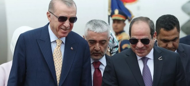 Cumhurbaşkanı Recep Tayyip Erdoğan’ın daveti üzerine Mısır Cumhurbaşkanı Abdülfettah es-Sisi, bugün Türkiye'ye geldi. Bu,12 yıl aradan sonra Mısır'dan Türkiye'ye cumhurbaşkanı düzeyinde yapılan ilk ziyaret oldu. Ankara, 12 yıl sonra Mısır'dan Cumhurbaşkanı düzeyinde bir ziyarete ev sahipliği yapıyor. Mısır Cumhurbaşkanı Abdulfettah es Sisi, Cumhurbaşkanı Recep Tayyip Erdoğan'ın resmi davetlisi olarak ilk kez Türkiye'ye geldi. Sisi'yi Esenboğa Havalimanı'nda Erdoğan karşıladı. Erdoğan ile Mısır Cumhurbaşkanı Sisi aynı araç ile Beştepe'ye hareket etti. Sisi için Beştepe'de resmi tören düzenlenecek. Cumhurbaşkanları, Türkiye-Mısır Yüksek Düzeyli Stratejik İş Birliği Konseyi toplantısına başkanlık edecek. İki ülke arasında 10 milyar dolara ulaşan ticaret hacminde yeni hedef 15 milyar dolar. Görüşmede bu hedefe ulaşmak için atılacak adımlar değerlendirilecek. Enerji, sağlık, turizm ve savunma sanayii alanında uzun vadeli iş birliği imkanları konuşulacak. [news_id:724321]