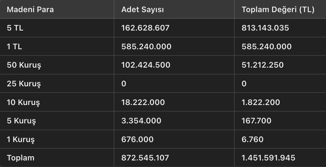 2024 yılı boyunca Darphane ve Damga Matbaası Genel Müdürlüğü tarafından dolaşıma sunulan toplam madeni para sayısı tam olarak 872 milyon 545 bin 107 adet olurken, bu paraların toplam değeri ise 1 milyar 451 milyon 591 bin 945 lira olarak hesaplandı. 2023 yılı ile karşılaştırıldığında, madeni para üretiminde çok büyük bir artış yaşanırken özellikle 5 liralık madeni paranın tedavüldeki payı rekor seviyelere ulaştı. AA muhabirinin Darphane ve Damga Matbaası Genel Müdürlüğü verilerinden derlediği bilgilere göre, 2024 boyunca 872 milyon 545 bin 107 adet madeni para tedavülde oldu. Tedavüle sürülen bozuk paraların değeri 1 milyar 451 milyon 591 bin 945 lira olarak hesaplandı. Verilere göre, 12 ayda 162 milyon 628 bin 607 adet 5 lira, 585 milyon 240 bin adet 1 lira, 102 milyon 424 bin 500 adet 50 kuruş, 18 milyon 222 bin adet 10 kuruş, 3 milyon 354 bin adet 5 kuruş ve 676 bin adet 1 kuruş dolaşıma sunuldu. Dolaşıma çıkan 872 milyon 545 bin 107 adet madeni paranın piyasa değeri ise 1,5 milyar liraya yaklaştı. Yıl boyunca 25 kuruş ise hiç dolaşımda olmadı. 2023 Yılındaki Madeni Para Üretimi ile 2024 Karşılaştırıldığında Büyük Farklar Ortaya Çıktı! 2023 yılında tedavüle sürülen madeni paraların toplam adedi 781 milyon 492 bin 300 olurken, cebe giren bozuk paraların toplam değeri ise 659 milyon 542 bin 600 lira olarak kaydedilmişti. 2024 yılı ile kıyaslandığında, madeni para üretiminde hem adet bazında hem de toplam değer açısından büyük bir artış yaşandı. Özellikle 5 liralık madeni para üretimindeki yükseliş dikkat çekerken, 25 kuruşluk madeni para ise 2024 yılı boyunca hiç üretilmedi. Darphane 2023’te 21 milyon 781 bin 200 adet 5 lira, 463 milyon 288 bin 100 adet 1 lira, 105 milyon 468 bin adet 50 kuruş, 105 milyon 788 bin adet 25 kuruş, 78 milyon 567 bin adet 10 kuruş, 6 milyon 120 bin adet 5 kuruş ve 480 bin adet 1 kuruş dolaşıma çıkarmıştı. 2024 Yılında Tedavülde Olan Madeni Paralar ve Toplam Değerleri Ayrıntılı Olarak Açıklandı! Darphane ve Damga Matbaası Genel Müdürlüğü tarafından 2024 yılı içerisinde üretilerek piyasaya sürülen madeni paraların adetleri ve toplam değerleri şu şekilde sıralandı: 2024 Yılında 5 Liralık Madeni Para Üretimi Rekor Seviyeye Ulaştı! 2023 yılında sadece 21 milyon 781 bin 200 adet üretilen 5 liralık madeni para, 2024 yılında tam 162 milyon 628 bin 607 adet basılarak rekor seviyeye ulaştı. Bu artış, 5 liranın günlük hayatta daha sık kullanılmaya başlandığını ve kağıt para yerine madeni paraya yönelimin arttığını gösteren önemli bir gelişme oldu. Aynı zamanda, 1 liralık madeni para üretimi de ciddi bir artış göstererek 2023’te 463 milyon 288 bin 100 adet üretilmişken, 2024’te bu sayı 585 milyon 240 bin adede yükseldi. Bu durum, küçük madeni paraların piyasadaki kullanım oranının arttığını ve kağıt para yerine daha fazla tercih edildiğini gösteren çarpıcı bir gelişme olarak dikkat çekti. 2024 Yılında 25 Kuruşluk Madeni Para Hiç Üretilmedi! 2023 yılında 105 milyon 788 bin adet üretilen 25 kuruşluk madeni para, 2024 yılında ise tek bir adet bile basılmadı. Bu durum, 25 kuruşun tedavülden yavaş yavaş çekileceği veya artık kullanılmayacağı yönünde çeşitli spekülasyonları da beraberinde getirdi. Özellikle 5 kuruş ve 1 kuruş gibi düşük değerli madeni paraların üretiminin devam ettiği göz önüne alındığında, 25 kuruşun tamamen ortadan kaldırılması ihtimali güçlenirken, bu konuda resmi bir açıklama yapılmadı. 2024, Madeni Para Üretiminde Tarihi Bir Yıl Oldu! Tüm veriler göz önüne alındığında, 2024 yılı madeni para üretimi açısından tarihi bir yıl olarak kayıtlara geçti. Özellikle 5 lira ve 1 lira gibi büyük madeni paraların üretiminde yaşanan çarpıcı artış, Türkiye’de nakit kullanımının yön değiştirdiğine işaret etti. Bununla birlikte, 25 kuruşluk madeni paranın 2024 yılı boyunca hiç üretilmemesi, piyasada bu değerdeki paraların kullanımının giderek azaldığını ve belki de tedavülden kalkabileceğini düşündürdü. 2025 yılına girerken, Darphane’nin madeni para üretiminde nasıl bir politika izleyeceği büyük bir merak konusu olurken, 2024 yılında yaşanan rekor üretim sürecinin gelecek yıllarda nasıl devam edeceği dikkatle takip edilecek.