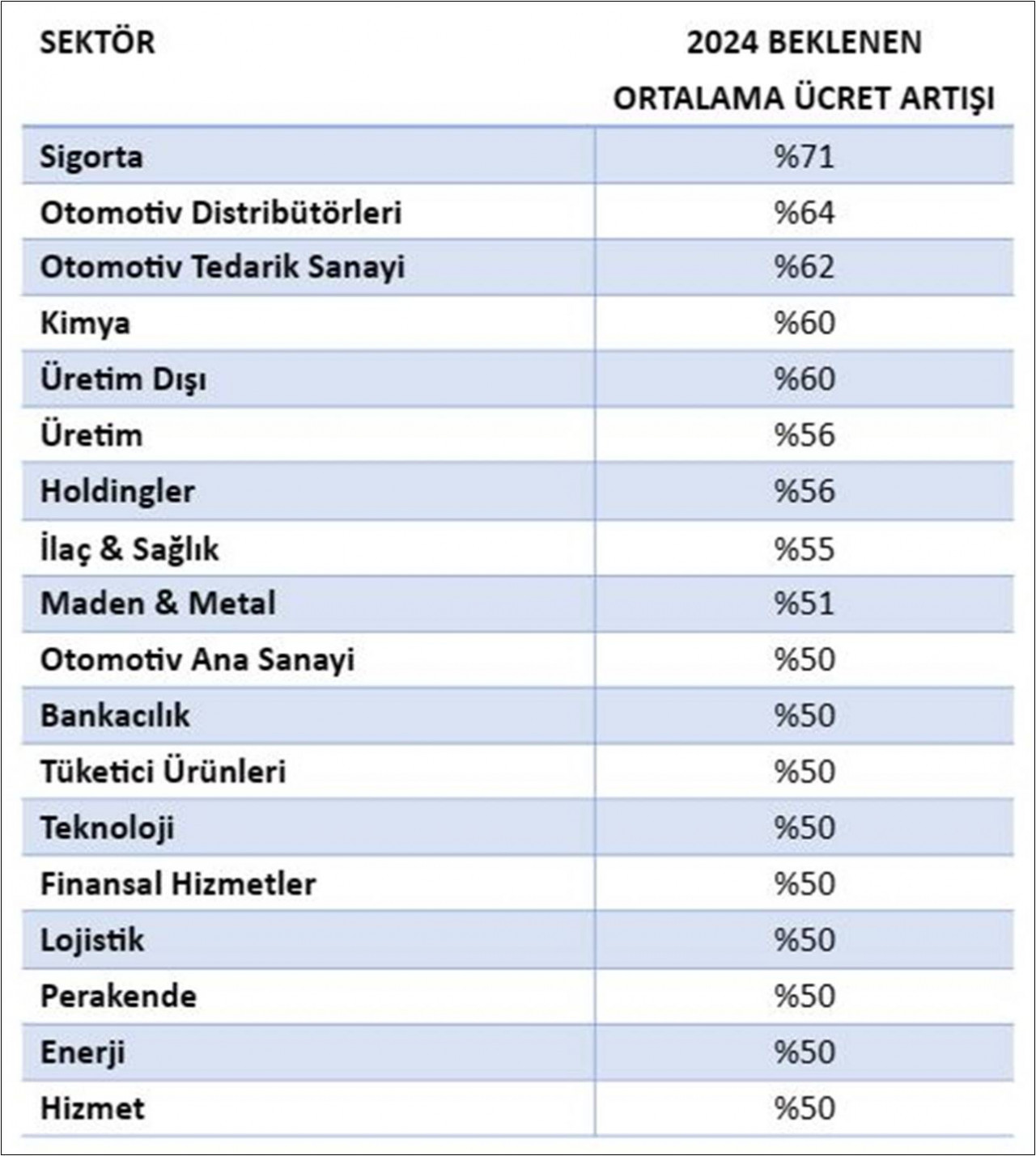 Uluslararası danışmanlık şirketi Mercer, 2024 yılında firmaların ortalama yüzde 50 zam yapmayı planladığını belirterek, sektörlerdeki maaş artış beklentilerini açıkladı. İşte 2024’te en fazla zam gerçekleşmesi beklenen sektörler.. Mercer, 1.744 firmanın katılımıyla gerçekleştirdiği 2023 Ücret ve Yan Haklar Araştırması’nın sonuçlarını paylaştı. Buna göre ilgili çalışmada, 2024 yılı için firmaların ücret artış planının ortalama yüzde 50 olduğu görüldü. Öte yandan firmaların yüzde 59’u yılda bir kez, yüzde 33’ü iki kez ve yüzde 8’i üç veya daha üzerinde zam yapmayı hedefledi. Kaynak: Dünya Dünya gazetesinin aktardığına göre 2024 yılı için en fazla zam verilmesi beklenen sektör %71 ile sigorta sektörü oldu. Bunu otomotiv ve kimya sektörü takip etti. 2022 yılının son çeyreğinden Eylül 2023'e kadar en fazla ücret artışı gösteren sektörler ise sırasıyla yüzde 115'le lojistik, yüzde 114'le perakende, yüzde 108'le enerji sektörü oldu. En fazla ücret artışı gösteren iş kolları da tedarik zinciri, üretim ve mühendislik olarak sıralandı. Firmaların en fazla bütçe ayırdığı yeni mezun rollerinde ise yapay zeka ve teknolojinin öncelik kazandığı görüldü. İstanbul, en çok ücret alan kent konumunda olurken; İzmir ve Ankara ile İstanbul arasındaki ücret farkı ise gittikçe kapanmaya başladı. “Ücretler artık asgari ücrete göre artıyor” Mercer Türkiye ve Doğu Akdeniz Kariyer Bölge Lideri Şadiye Azışık Kılcıgil ise konuyla ilgili değerlendirmesinde, şunları söyledi: “Türkiye’de özellikle pandemi sonrasında yaşanan ekonomik dalgalanmalarla birlikte geçtiğimiz ve bu yıl daha fazla gördüğümüz yüksek enflasyon, çalışan tarafında ücret artış beklentilerini de yükseltiyor. 2024 yılında firmaların çalışanlarına yapması beklenen toplam ücret oranı artışı yüzde 50 olarak tespit edildi. Çok daha önceki senelerde enflasyonla paralel ilerleyen ücret artışlarının 2021 yılından bu yana asgari ücret artış oranlarıyla paralel ilerlediğini görüyoruz. Bunun yanı sıra yüksek enflasyon ve asgari ücretteki artışlar, yeni mezun ücret seviyesini yukarı yönlü oynatmaya devam ederken organizasyonlardaki üst seviye rollerde benzer seviyelerde artışlar yapılmadığı görüldü. Bu durum, Türkiye’deki yeni mezun ve genel müdür seviyeleri arasındaki makasın 2021 ve geçtiğimiz yıla göre daraldığını gösteriyor." [news_id:717014]