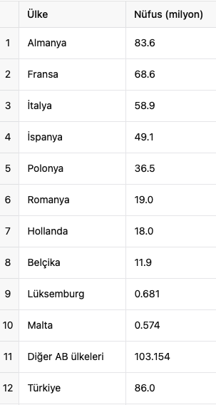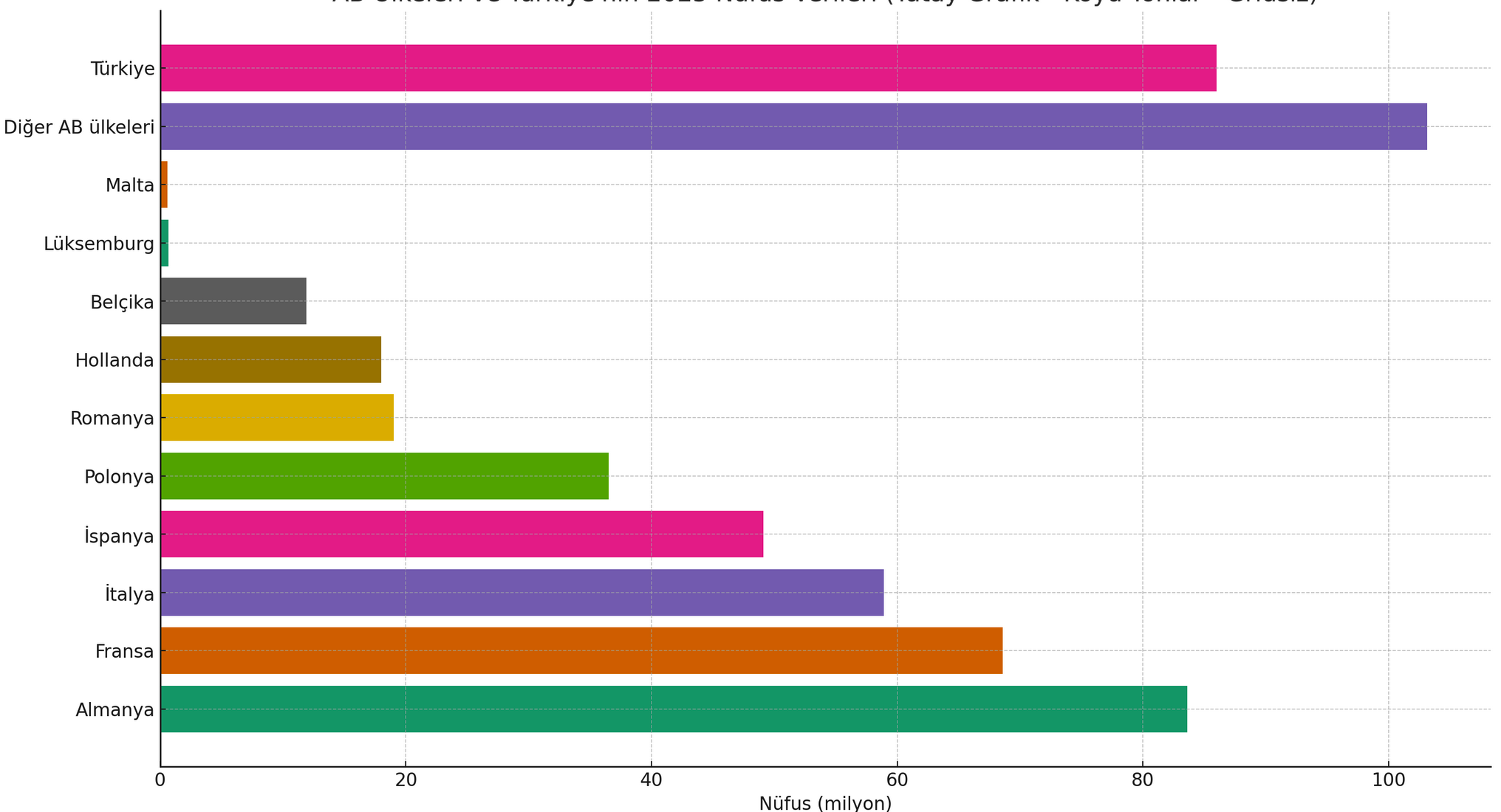 Avrupa Birliği’nin toplam nüfusu, 2025 yılı başı itibarıyla 450,4 milyona yükselerek, Kovid-19 sonrasında art arda dört yıl süren büyümesini sürdürdü. Artışın kaynağında özellikle pandemi sonrası hızlanan göç hareketleri etkili oldu. Eurostat Verileri Açıklandı: Almanya Zirvede, Malta Sonda Avrupa İstatistik Ofisi (Eurostat), Avrupa Birliği (AB) ülkelerinin 1 Ocak 2025 tarihli nüfus verilerini kamuoyuyla paylaştı. 2024 yılı başında 449,3 milyon olarak kaydedilen toplam nüfus, 2025’te 450,4 milyon seviyesine çıkarak dikkat çekici bir artış göstermiş oldu. Avrupa kıtasının en kalabalık ülkesi olan Almanya, 83,6 milyonluk nüfusuyla AB içinde ilk sıradaki yerini korudu. Almanya’yı 68,6 milyonla Fransa, 58,9 milyonla İtalya ve 49,1 milyonla İspanya takip etti. Nüfus bakımından beşinci sırada 36,5 milyonluk değeriyle Polonya yer aldı. Romanya 19 milyonluk nüfusuyla altıncı sırayı alırken, Hollanda 18 milyon, Belçika ise 11,9 milyon kişiyle sıralamadaki yerlerini aldı. Birliğin en düşük nüfusuna sahip ülkeleri ise sırasıyla 681 bin kişiyle Lüksemburg ve 574 bin kişiyle Malta oldu. Diğer AB ülkelerinin toplam nüfusu ise yaklaşık 103,1 milyon olarak hesaplandı. Göç Hareketleri Etkili Oldu, 4 Yıldır Artış Devam Ediyor Avrupa Birliği’nin toplam nüfusu, 2021 yılında Kovid-19’un etkileriyle birlikte düşüş göstermişti. Bu düşüşün ardından geçen dört yıl içinde nüfus her yıl artış yönünde seyretti. Bu eğilimde, özellikle salgın sonrası hızlanan ve yeniden şekillenen göç akımlarının önemli bir etkisi bulundu. Eurostat açıklamasında, “AB'nin nüfusu 2021'de Kovid-19'un etkileri nedeniyle yaşanan düşüşün ardından 4 yıl boyunca artış gösterdi. AB'nin nüfus artışı özellikle Kovid-19 salgını sonrası artan göç hareketlerinden kaynaklandı.” ifadelerine yer verildi. Türkiye Nüfusu 85 Milyon 664 Bin 994 Oldu Avrupa Birliği’ne üye olmayan Türkiye’nin toplam nüfusu ise 2025 yılı itibarıyla 85 milyon 664 bin 994 olarak belirlendi. Türkiye, AB ülkeleri arasında nüfus büyüklüğü açısından Almanya’nın ardından ikinci sırada yer alacak kadar geniş bir demografik yapıya sahip durumda.