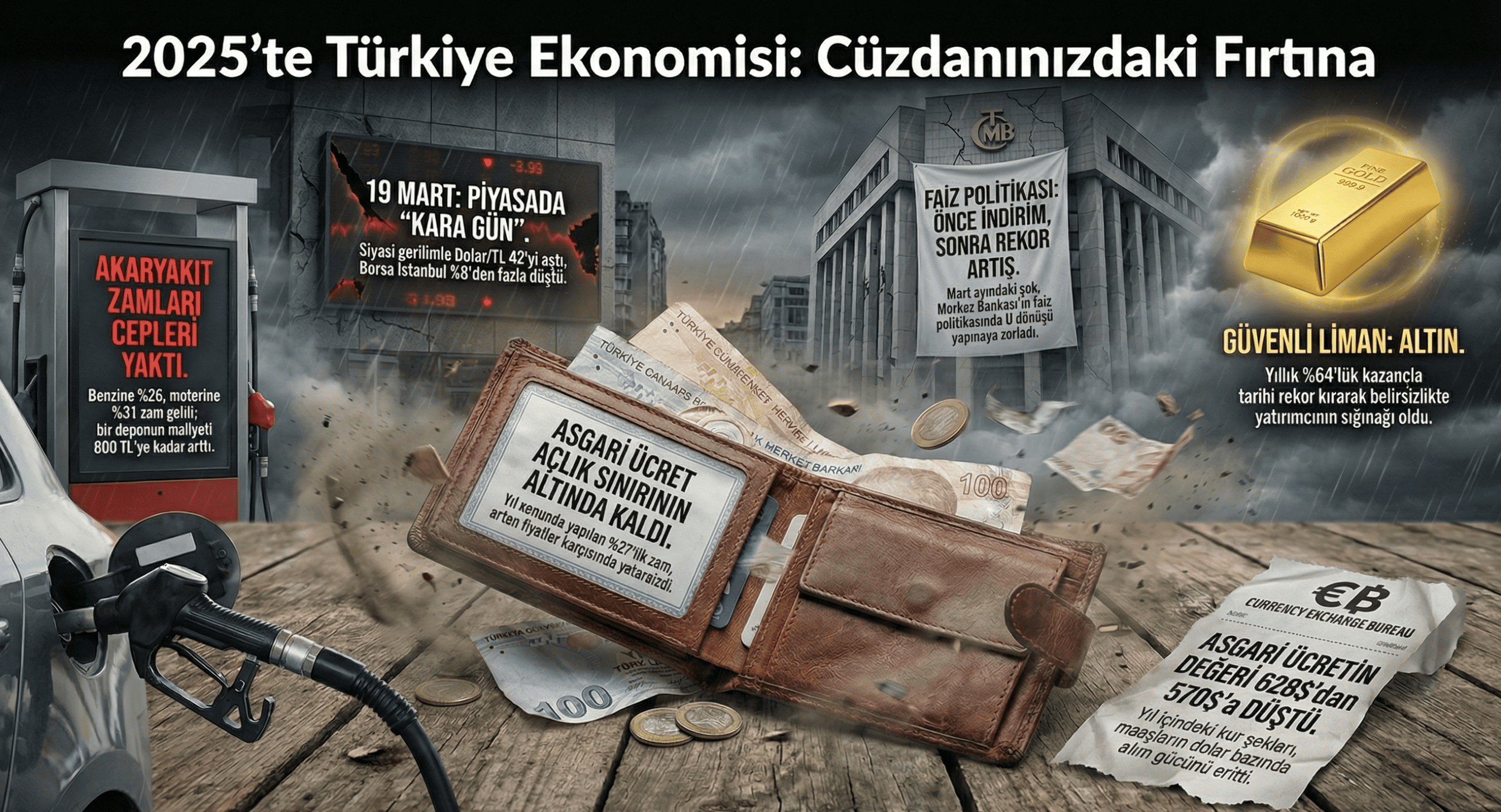 2025 boyunca ekonomi ve finans gündemi hız kesmedi. Döviz kurları, faiz kararları, enflasyon verileri ve küresel gelişmelerin piyasalar üzerindeki yansımalarını ay ay bir araya getirdik. Hazırladığımız bu derlemede, öne çıkan başlıkları kısa ve net özetlerle tek akışta topladık. Ocak TCMB faiz indirimi (23 Ocak): Türkiye Cumhuriyet Merkez Bankası, enflasyonla mücadele ve ekonomik toparlanma stratejileri kapsamında 23 Ocak 2025’te politika faizini yüzde 47,5’ten yüzde 45’e indirdi. Bu karar, yıl başındaki kredi maliyetlerini düşürmeyi ve iç talebi canlandırmayı amaçladı. Aynı dönemde TCMB enflasyon tahminini yukarı revize ederek yıl sonu TÜFE beklentisini %21’den %27,1’e çekti; Hazine ve Maliye Bakanı Şimşek de enflasyonda “sınırlı kötüleşme” sinyali verdi. Bu gelişmeler, gevşek para politikasına geçiş ihtiyatının ve mali disiplinden taviz verilmeyeceği vurgusunun bir arada dile getirildiği bir ortamda yaşandı. Yeni asgari ücret açıklandı: 1 Ocak 2025’ten itibaren geçerli olmak üzere yeni asgari ücret 22.104 TL olarak belirlendi. TÜİK’in 2024 yılı enflasyonu %44,38 olarak açıklamasına rağmen asgari ücrete yalnızca %30 zam yapılması, ücretli kesimin reel alım gücünün eridiğine işaret etti. Bu zam oranı, enflasyonun önemli ölçüde altında kaldığı için yılın ilk aylarında çalışanların alım gücünün kayba uğradığı değerlendirmeleri yapıldı. Asgari ücretin açıklanması, hanehalkı bütçeleri üzerinde enflasyon oranının çok altında kalan bir artışın ortaya çıkardığı ekonomik strese işaret etti. Enflasyonun seyri: TÜİK verilerine göre Aralık 2024’te tüketici fiyatları aylık %1,03 artarak yıllık %42,12’ye ulaştı. Bu yüksek seviye yeni yılın ilk aylarında da devam etti; Ocak 2025’te TÜFE yıllık %42’ye dayanırken aylık bazda da yükselişler görüldü. Yüksek enflasyon, hem hanehalkı harcamaları hem de yatırımlar üzerinde baskı yarattı. Merkez Bankası ve bakanlık yetkilileri, yüksek enflasyonla mücadele taahhüdünü koruyarak sıkı para ve maliye politikalarından sapılmayacağını vurguladı. Küresel ekonomik beklentiler: Dünya Bankası’nın yayımladığı Küresel Ekonomik Görünüm raporu, 2025–2026 ortalamalarında dünya ekonomisinin %2,7 civarında büyümesini öngördü. Orta ve uzun vadede zayıf büyüme bekleyen raporda, küresel talep ve ticarette toparlanmanın sınırlı kalacağı vurgulandı. Bu tahminler, küresel ekonomik görünümdeki belirsizlikleri yansıtıp gelişmekte olan piyasaların dış talepyle ilgili kaygılarını artırdı. Ocak ayında İsviçre’de düzenlenen Davos zirvesinde de ekonomik belirsizlikler, iklim finansmanı ve dijital dönüşüm gibi konular öne çıktı; bu toplantıların sonuçları küresel yatırımcı algısını etkiledi. Maliye politikaları ve yatırım ortamı: Hazine ve Maliye Bakanı Mehmet Şimşek, Ocak ayında 2025 yılı enflasyon tahminini %27,1 olarak açıkladı. Bakan, Türkiye’nin makroekonomik hedeflerine bağlılığını vurguladı ancak sıkça gündeme gelen sayısal revize eleştirilerine “devletiz, zırt pırt rakam revize edemeyiz” sözleriyle yanıt verdi. Böylece Ocak ayında mali disiplin vurgulanırken, yatırımcılar programın dayanıklılığı konusunda şeffaflık istedi. Uluslararası finans kuruluşları da küresel büyüme beklentilerini aşağı yönlü güncellerken Türkiye’ye yönelik büyüme tahminlerini düşük tuttu. Bu gelişmeler, iç ve dış yatırımcıların makro programın sürdürülebilirliğine dair sorgulamalarını beraberinde getirdi. Şubat Faiz ve enflasyon beklentileri: 7 Şubat’ta TCMB Enflasyon Raporu toplantısında 2025 yıl sonu enflasyon tahmini %21’den %24’e yükseltildi. 8 Kasım 2024’te %21’e çıkarılan tahmin bu kez yeniden yukarı alındı. Para politikası kurulunda revizeye gerekçe olarak gıda ve enerji fiyatlarındaki gelişmeler gösterildi. Bu revizyon, piyasadaki yüksek enflasyon endişelerini yansıttı. Aynı dönemde, TÜFE Şubat 2025’te yıllık %39’a gerilerken aylık artış %2,27 olarak gerçekleşti. Enflasyon eğiliminde görülen geçici yavaşlama, TCMB’nin para politikasının öngörülebilirliğine işaret etmekle birlikte yüksek enflasyona karşı ihtiyatlı duruş ihtiyacını da gündemde tuttu. Özel sektör ve siyasette gerilim: TÜSİAD Yönetim Kurulu Başkanı Orhan Turan ve Yüksek İstişare Konseyi Başkanı Ömer Aras, 13 Şubat’ta yapılan genel kurul konuşmalarında hükümete eleştirel yaklaştı. Bu eleştirilerin ardından Cumhurbaşkanı Erdoğan’ın sert yanıt vermesi (“Hadlerini aştılar”) ve Turan/Aras hakkında soruşturma açılması gündeme geldi. Bu gelişmeler, özel sektör–devlet ilişkilerinde gerilim sinyalleri verdi. Hukuk ve yatırım ortamıyla ilgili belirsizlikler, iş dünyası temsilcileri arasında kaygı yarattı. Söz konusu tartışmalar, Türkiye’nin reform ve güven ortamı algısına yönelik soru işaretlerini artırırken yerli ve yabancı yatırımcıları yakından ilgilendirdi. Dış ticaret düzenlemeleri: Şubat ayında Suriye ile ticarette önemli kolaylıklar hayata geçirildi. Türkiye Gümrük Bölgesi üzerinden Suriye’ye ihracat ve transit taşımalarında uygulanan kısıtlamalar kaldırıldı. Bu düzenleme ile yıllardır iç savaş nedeniyle sınırlı kalan Suriye ile ticaret ilişkilerinde normalleşme sinyali alındı. Uygulamanın hem ihracatçı firmalara hem de bölgesel ekonomiye olumlu yansıması bekleniyor. Özellikle komşu ülkelerle ticaretin artırılması, dış ticaret açığı ve cari denge üzerinde sınırlı da olsa rahatlatıcı etkiler yaratabileceği değerlendirildi. Para arzı artışı: Şubat 2025’te M0 para arzı 644 milyar TL iken Mart ayında %14,45 artarak 760 milyar TL’ye çıktı. Bu artış y