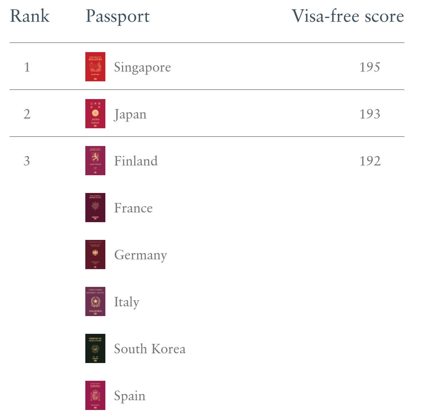 Pasaportların gücünü kaç ülkeye vizesiz seyahat edebildiğine bağlı olarak ölçen Henley Pasaport Endeksi’nin bu yıla ilişkin sonuçları açıklandı. Peki, Türk pasaportu kaçıncı sırada yer aldı? İşte detaylar.. Henley & Partners tarafından Uluslararası Hava Taşımacılığı Birliği’nin (IATA) resmi verilerinden faydanılarak hazırlanan Henley Pasaport Endeksi sonuçları açıklandı. Endekse göre 227 destinasyondan 195'ine vizesiz erişim sağlayan Singapur, en güçlü pasaport ünvanını korumayı başardı. Japonya ise 193 destinasyona vizesiz erişim sağlayarak listenin ikinci sırasında yer aldı. 6 ülke üçüncü sırayı paylaştı Üçüncü sırada Finlandiya, Fransa, Almanya, İtalya, Güney Kore ve İspanya yer aldı. Bu altı ülkeden her birinin pasaportuna sahip kişilerin 192 ülkeye vizesiz seyahat edebildiği görüldü. Geçtiğimiz yıl Fransa, Almanya, İtalya, Japonya ve İspanya en güçlü ikinci pasaport konumunda yer alıyordu. Japonya'nın Covid kısıtlamalarından sonra komşusu Çin'e vizesiz erişimini yeniden sağlaması sonrasında bu yıl diğer ülkeler üçüncü sıraya gerilemiş oldu. Kaynak: Henley & Partners Avusturya, Danimarka, İrlanda, Lüksemburg, Hollanda, Norveç ve İsveç'ten oluşan yedi ülkenin oluşturduğu grup ise 191 destinasyona vizesiz erişim ile dördüncü sırayı paylaştı. Belçika, Yeni Zelanda, Portekiz, İsviçre ve Birleşik Krallık da 190 destinasyona vizesiz erişimle beşinci sırada yer aldı. Türk pasaportu 6 sıra yükseldi Türkiye ise geçen yılın aynı dönemine göre endekste 6 sıra birden yükselerek Rusya ile birlikte en güçlü 46’ıncı pasaporta sahip ülke oldu. Türkiye ve Rusya’nın 116 ülkeye vizesiz seyahat imkanı sağladığı görüldü. Endekse ilişkin değerlendirmede bulunan Henley & Partners Türkiye Direktörü Burak Demirel, “İçinde bulunduğumuz jeopolitik koşullar, sadece dünya siyasetini değil, ekonomisini de direkt etkiliyor. 2025 yılı için hazırladığımız pasaport endeksindeki yeni tablo ve ülkeler içindeki sıralamaların değişimi de bunun kanıtı. Bugün 116 ülkeye vizesiz seyahat imkanı sağlayan Türkiye’nin geçen yılın aynı dönemine göre endeksteki sıralamasını 6 basamak birden yükselterek, 46’ncı sıraya yerleşmiş olması mutluluk verici” dedi. Kaynak: Henley & Partners Afganistan pasaportu güç kaybetmeye devam ediyor Henley Pasaport Endeksi'nin en alt sırasında ise Afganistan pasaportu yer alıyor. Buna göre ülke, geçen yıl iki destinasyona daha vizesiz erişimini kaybederek endeksin 19 yıllık tarihinde en zayıf konumunda bulunuyor. Afganistan pasaportuyla vizesiz gidilebilen ülke sayısının ise sadece 26 olduğu görülüyor. [news_id:758465]
