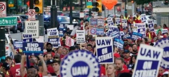 ABD'de, Birleşik Otomotiv İşçileri Sendikasının (UAW) 3 büyük otomobil üreticisine karşı gittiği grevin maliyetinin 6 haftada 10,4 milyar dolara ulaştığı tahmin edildi. ABD’de, Birleşik Otomotiv İşçileri Sendikasının (UAW) 3 büyük otomobil üreticisine karşı gittiği grevin maliyetinin 6 haftada 10,4 milyar dolara ulaştığı tahmin edildi. Michigan merkezli ekonomik danışmanlık firması Anderson Economic Group (AEG), Birleşik Otomotiv İşçileri Sendikasına bağlı işçilerin General Motors (GM), Ford ve Stellantis’e karşı başlattığı, “Ayağa Kalk” olarak adlandırılan greve ilişkin son analizini paylaştı. AEG’nin açıklamasında, otomotiv işçilerinin grevinin doğrudan maliyetinin 6 haftada 10,4 milyar dolara ulaştığının tahmin edildiği belirtildi. 4,3 milyar doları üretici kaybı Bu maliyetin yaklaşık 650 milyon dolarının ücret kaybından kaynaklandığı, 4,3 milyar dolarının üretici kaybı, 3,3 milyar dolarının tedarikçi kaybı ve 2 milyar dolarının bayi, müşteri ve diğer kayıplardan oluştuğu ifade edildi. Açıklamada, sendikanın 3 otomobil üreticisiyle geçici anlaşmalara varmasından önce işten çıkarılan işçilerin sayısının ise 56 bini aştığı bildirildi. Sendika 3 büyük üreticiyle geçici anlaşma vardı UAW’nin Ford, GM ve Stellantis ile yaklaşık 150 bin işçiyi kapsayan yeni sözleşmeye yönelik görüşmelerinden mevcut sözleşmenin bitiş tarihi olan 14 Eylül itibarıyla anlaşma çıkmaması sonrasında Michigan, Missouri ve Ohio’daki 3 fabrikada greve gitme kararı alınmıştı. Grev, 15 Eylül’de başlamış ve sendikanın 88 yıllık tarihinde ilk defa 3 otomobil şirketinin işçileri birlikte greve gitmişti. UAW, şirketlerle pazarlık sürecinde farklı fabrikalar ve parça dağıtım merkezlerini kapsayacak şekilde grevi genişletmiş, grevdeki toplam işçi sayısı 45 bini aşmıştı. Sendika, 26 Ekim’de Ford, 28 Ekim’de Stellantis ve 30 Ekim’de GM ile geçici anlaşmaya varıldığını ve işçilerin işlerine döneceğini duyurmuştu. [news_id:708471]