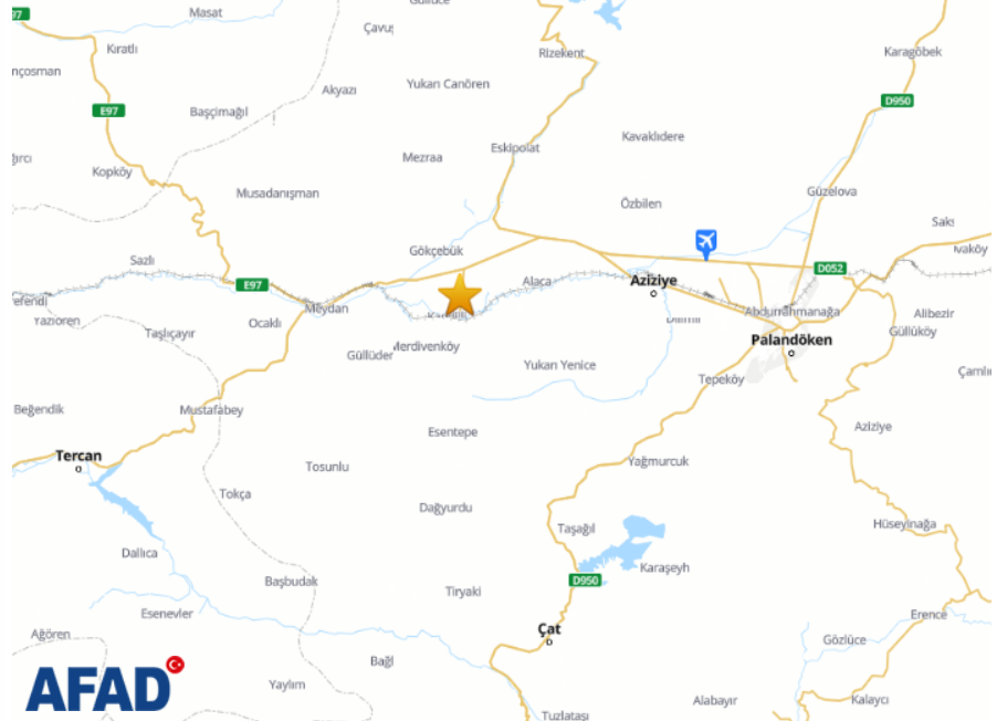 Erzurum ve çevre illerde hissedilen bir deprem oldu. AFAD depremin merkez üssünü Aşkale, büyüklüğünü ise 4,4 olarak açıkladı. Afet ve Acil Durum Yönetimi Başkanlığının (AFAD) internet sitesinde yer alan bilgiye göre saat 11.29'da Erzurum'da deprem meydana geldi. Yerin 7 km altında gerçekleşen depremin büyüklüğü 4,4 olarak açıklandı. Depremin merkez üssünün ise Aşkale olduğu bildirildi. [news_id:786090]