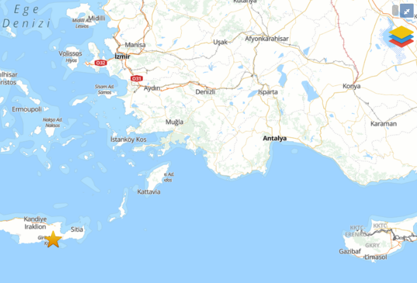 AFAD, Girit Adası'nda 5 büyüklüğünde deprem olduğunu duyurdu. Afet ve Acil Durum Yönetimi Başkanlığının (AFAD) internet sitesinde yer alan bilgiye göre saat 14.26'da deprem meydana geldi. Yerin 5,39 km altında gerçekleşen depremin büyüklüğü 5 olarak açıklandı. Depremin merkez üssünün ise Girit Adası (Kriti) olduğu bildirildi. AFAD'ın verilerine göre depremin merkez üssü Datça'ya 253 km uzaklıkta bulunuyor. Kaynak: AFAD [news_id:774251]