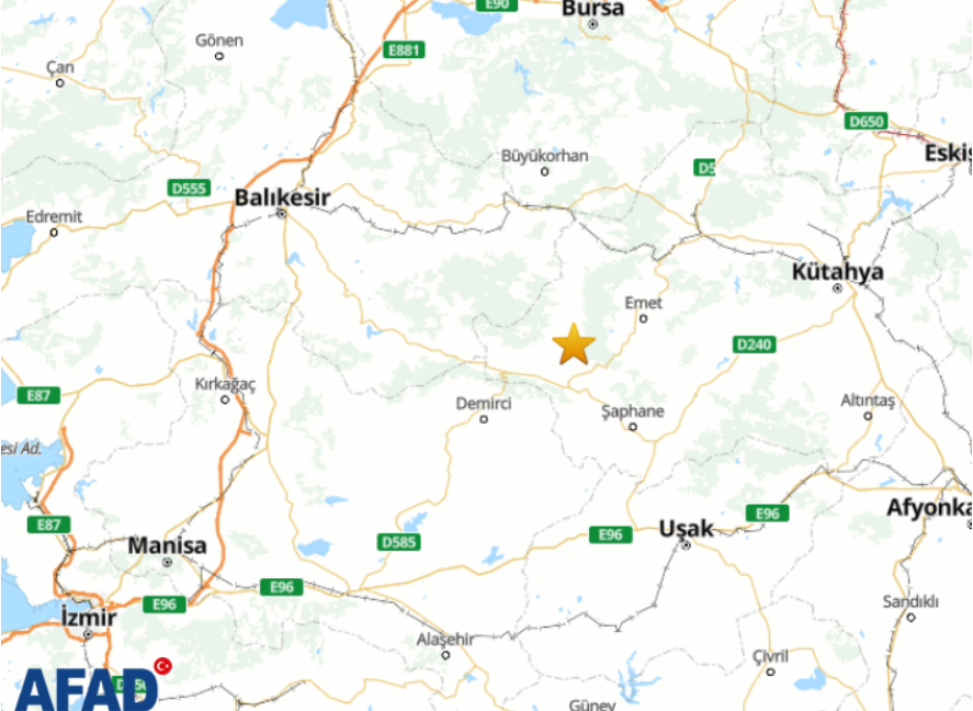 AFAD verilerine göre Kütahya’nın Simav ilçesinde saat 12.59’da 5.4 büyüklüğünde bir deprem meydana geldi. Afet ve Acil Durum Yönetimi Başkanlığının (AFAD) internet sitesinde yer alan bilgiye göre Kütahya'da deprem oldu. Yerin 8,4 km altında gerçekleşen depremin büyüklüğü 5.4 olarak açıklandı. Depremin merkez üssünün ise Simav olduğu bildirildi. Bakan Yerlikaya'dan ilk açıklama İçişleri Bakanı Ali Yerlikaya ise depremin ardından yaptığı paylaşımda şunları aktardı: "Kütahya Simav’da 5,4 büyüklüğünde bir deprem meydan gelmiştir. Çevre illerden de hissedilen depremle ilgili olarak, AFAD ve ilgili kurumlarımızın tüm ekipleri saha taramalarına başlamıştır. Depremden etkilenen vatandaşlarımıza geçmiş olsun dileklerimi sunuyorum. Allah ülkemizi ve milletimizi afetlerden korusun." [news_id:786090]