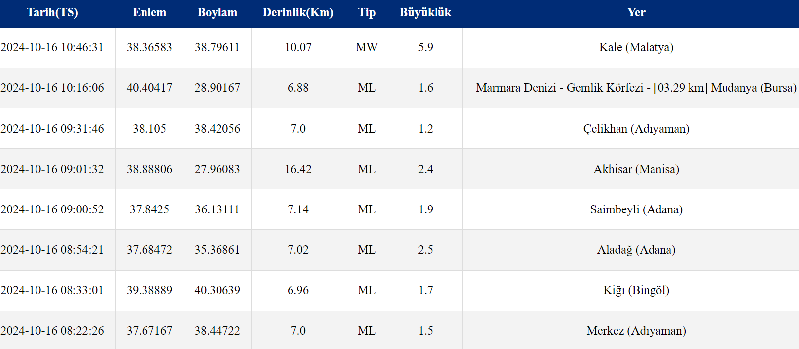 Malatya'nın Kale ilçesinde, saat 10.46'da 5,9 büyüklüğünde deprem meydana geldi. Afet ve Acil Durum Yönetimi Başkanlığının (AFAD) internet sitesinde yer alan bilgiye göre, saat 10.46'da merkez üssü Malatya'nın Kale ilçesi olan 5,9 büyüklüğünde sarsıntı kaydedildi. Depremin 10,07 kilometre derinlikte meydana geldiği belirlendi. Gerçekleşen 5,9 büyüklüğündelki deprem Diyarbakır, Tunceli ve Elazığ'da da hissedildi. Kaynak: AFAD "Herhangi bir can ve mal kaybı bulunmamaktadır" İçişleri Bakanı Ali Yerlikaya, konuyla ilgili sosyal medya hesabından yaptığı açıklamada, şunları kaydetti: "Birçok ilde hissedilen depremin ardından Prof. Dr. Naci Görür ise "Muhtemelen bugün olan deprem 6 Şubat 2023 depremlerinin bu faya enerji transferinin bir sonucudur. Endişe yok" dedi. Malatya’da meydana gelen 5,9 büyüklüğündeki deprem sonrası Malatya, Diyarbakır, Şanlıurfa, Elazığ, Batman ve Tunceli illerimizde AFAD ve ilgili kurumlarımız saha tarama çalışmalarını sürdürmektedir. 112 Acil Çağrı Merkezi'mize 374 ihbar gelmiştir. Bu ihbarların 341’i bilgi ; 33’ü de yardım amaçlı çağrıdır. Malatya'da 1, Şanlıurfa'da 1, Elazığ'da 1 olmak üzere toplam 3 binada kısmi çökme meydana gelmiştir. Herhangi bir can ve mal kaybı bulunmamaktadır. Depremden etkilenen vatandaşlarımıza geçmiş olsun dileklerimi sunuyorum. Allah ülkemizi ve milletimizi afetlerden korusun." Eğitime ara verildi Malatya Valisi Seddar Yavuz ise konuyla ilgili açıklamasında, “Saha taramalarımız başladı şu an için olumsuz bir durum yok. Tüm eğitim kurumlarımız tahliye edildi, eğitime 1 gün ara verildi” ifadelerini kullandı. [news_id:742926]