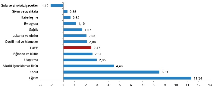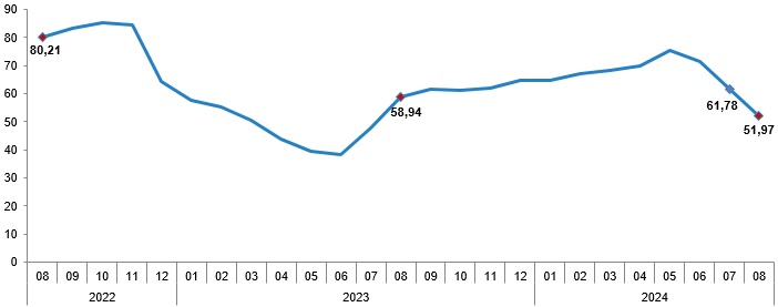 Türkiye İstatistik Kurumu (TÜİK), ağustos ayına ilişkin resmi enflasyon rakamlarını açıkladı. TÜİK verilerine göre enflasyon ağustos ayında yıllık bazda yüzde 51,97 artış kaydetti. Bu döneme ilişkin piyasaların genel beklentisi ise enflasyonun yüzde 52,20 seviyesinde gerçekleşmesi yönündeydi. Aylık bazda beklenti yüzde 2,64 seviyesinde olurken, aylık artış ise yüzde 2,47 olarak kayıtlara geçti. Temmuz ayında enflasyon aylık yüzde 3,23, yıllık ise yüzde 61,78 artış kaydetmişti. Kaynak: TÜİK Ağustos ayı enflasyonunun alt detaylarına bakıldığında ise bir önceki yılın aynı ayına göre en az artış gösteren ana grup %28,96 ile ulaştırma oldu. Buna karşılık, bir önceki yılın aynı ayına göre artışın en yüksek olduğu ana grup ise %120,81 ile eğitim oldu. Kaynak: TÜİK Ana harcama grupları itibarıyla 2024 yılı Ağustos ayında bir önceki aya göre azalan ana grup %-1,10 ile gıda ve alkolsüz içecekler oldu. Buna karşılık, 2024 yılı Ağustos ayında bir önceki aya göre artışın en yüksek olduğu ana grup ise %11,34 ile eğitim oldu. Kaynak: TÜİK Endekste kapsanan 143 temel başlıktan (Amaca Göre Bireysel Tüketim Sınıflaması-COICOP 5'li Düzey) 2024 yılı Ağustos ayı itibarıyla, 22 temel başlığın endeksinde düşüş gerçekleşirken, 3 temel başlığın endeksinde değişim olmadı. 118 temel başlığın endeksinde ise artış gerçekleşti. Özel kapsamlı TÜFE göstergesi (B) yıllık %50,87, aylık %2,88 oldu İşlenmemiş gıda ürünleri, enerji, alkollü içkiler ve tütün ile altın hariç TÜFE'deki değişim, 2024 yılı Ağustos ayında bir önceki aya göre %2,88, bir önceki yılın Aralık ayına göre %32,19, bir önceki yılın aynı ayına göre %50,87 ve on iki aylık ortalamalara göre %66,79 olarak gerçekleşti. Kaynak: TÜİK ENAG ve İTO'nun verileri yavaşlamaya işaret etmişti Enflasyon Araştırma Grubu’nun (ENAG) hesaplamalarına göre ise enflasyon (E-TÜFE) ağustos ayında aylık bazda yüzde 3,47, yıllık bazda ise yüzde 90,35 artış göstermişti. İstanbul Ticaret Odası (İTO) ise pazar günü İstanbul'da perakende fiyatların aylık yüzde 1,73, yıllık ise yüzde 61,57 artış gösterdiğini açıklamıştı. [news_id:742196] [news_id:743445]