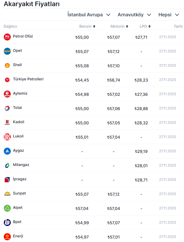 Kasım ayında peş peşe yapılan zamlarla yükselen akaryakıt fiyatlarına yarından itibaren çifte indirim geliyor. Ekim ayında 70 dolar sınırını test eden brent petrol, son bir aylık dönemde yüzde 4’ün üzerinde kayıp yaşadı. Petrol fiyatlarındaki kayıp serisine rağmen kasım ayında benzin ve motorin fiyatlarına ise üst üste zamlar geldi. Buna göre kasım ayında benzinin litresi 1,57 TL, motorinin litresi 1,64 TL artış gösterdi. Bu zamların ardından petrol fiyatlarındaki gerilemenin sürmesiyle akaryakıt fiyatlarına indirim gelmesinin beklendiği bildirildi. Petros’un aktardığına göre yarından itibaren benzinin litresinde 0,96 TL, motorinin litresinde ise 1,96 TL indirim gerçekleşmesi bekleniyor. Beklenen indirimler öncesinde İstanbul Avrupa yakasında benzinin litre fiyatı 55 TL’den, motorinin litre fiyatı 57,07 TL’den, LPG fiyatı ise 27,71 TL’den satılıyor. Akaryakıt fiyatları nasıl hesaplanıyor? Türkiye'de benzin ve motorin fiyatları hesaplanırken; Gümrüksüz rafineri fiyatına ÖTV ve EPDK payının eklenmesiyle KDV hariç Rafineri satış fiyatı bulunuyor. Gümrüksüz Rafineri Fiyatı hesaplanırken ise Akdeniz-İtalyan piyasasında yayınlanan günlük CIF Akdeniz ürün fiyatları ve günlük dolar kuru takip edilerek, belli bir fiyat değişim farkında gümrüksüz rafineri tavan satış fiyatı elde ediliyor. [news_id:793052]