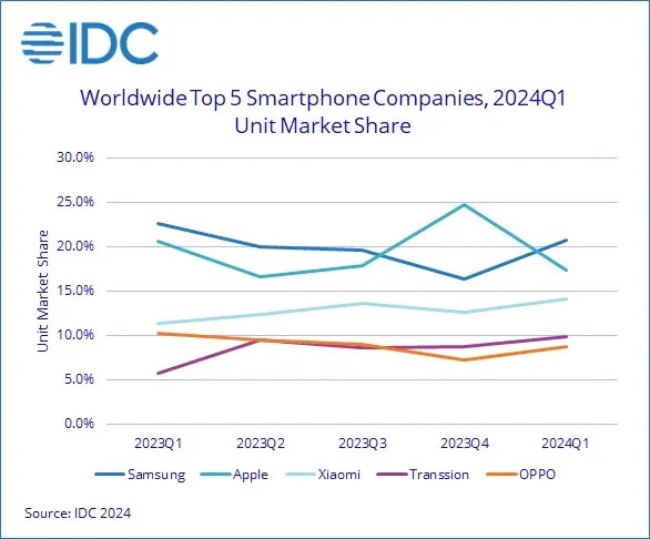 Küresel bazda yılın ilk çeyreğinde 289,4 milyon akıllı telefon satılırken, akıllı telefon pazarının lideri de değişti. İşte pazarın yeni lideri ve pazardaki satış miktarları.. Uluslararası veri şirketi IDC, 2024'ün ilk çeyreğinde küresel bazda akıllı telefon sevkiyatlarına ilişkin verileri açıkladı. Buna göre, yılın ocak-mart döneminde küresel pazarda 289,4 milyon adet akıllı telefon satışı gerçekleştirildi. Yılın ilk 3 ayında akıllı telefon satışları geçen yılın aynı dönemine göre yüzde 7,8 artarken, Samsung en fazla akıllı telefon satan şirket oldu. İlk çeyrekte 60,1 milyon akıllı telefon satmayı başaran Samsung, dünyanın en fazla akıllı telefon satıcısı sıralamasında Apple'ı geçti. Güney Koreli akıllı telefon üreticisi Samsung'un ilk çeyrekte satışları geçen yılın aynı dönemine göre yüzde 0,7 düşerken, pazar payı yüzde 20,8 oldu. Apple'ın ocak-mart döneminde satışları yüzde 9,6 düşerek 50,1 milyona geriledi. Şirketin pazar payı ise yüzde 20,7'den yüzde 17,3'e indi. Kaynak: IDC iPhone sevkiyatlarındaki düşüş, Çin'de şirket ve devlet kurumlarında çalışanların Apple marka cihaz kullanımının sınırlandırılmasından kaynaklandı. Çinli akıllı telefon üreticisi Xiaomi'nin ilk çeyrekte satışlarını yüzde 33,8 artırması ise dikkati çekti. Şirket, 40,8 milyon adet satış yaparak üçüncü sırada yer alırken, pazar payı da yüzde 11,4'ten yüzde 14,1'e yükseldi. Çinli üretici Transsion da söz konusu dönemde 28,5 milyon telefon satışıyla pazar payını yüzde 9,9'a çıkararak dördüncü sıraya yerleşti. Söz konusu dönemde Çinli üretici Oppo da 25,2 milyon adet akıllı telefon satarak beşinci sırada yer aldı. Şirketin satışları yılın ilk çeyreğinde 2023'ün aynı çeyreğine göre yüzde 8,5 azalırken, pazar payı yüzde 10,3'den yüzde 8,7'ye geriledi. LG, Vivo, Nokia ve Blackberry gibi diğer akıllı telefon markalarının satışları ise 84,7 milyon adet olarak hesaplanırken, pazar payları yüzde 29,3 olarak tespit edildi. [news_id:730122] [news_id:730141]