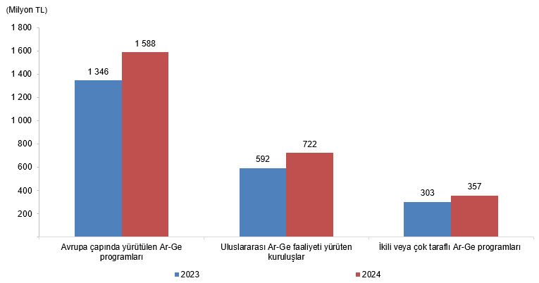 Türkiye'de merkezi yönetim bütçesinden araştırma ve geliştirme (AR-GE) faaliyetleri için geçen yıl 98 milyar 737 milyon lira harcama yapıldı. Türkiye İstatistik Kurumu (TÜİK), "Merkezi Yönetim Bütçesinden Araştırma Geliştirme Faaliyetleri İçin Ayrılan Ödenek ve Harcamalar-2024" bültenini yayımladı. Buna göre, merkezi yönetim bütçesinden AR-GE için 2023 yılında 98 milyar 737 milyon lira harcama gerçekleştirildi. Geçen yıl söz konusu bütçeden yapılan AR-GE harcamalarının merkezi yönetim bütçesi içindeki oranı yüzde 1,38 oldu. AR-GE harcamalarının 26 trilyon 276 milyar 307 milyon liralık Gayri Safi Yurt İçi Hasıla içindeki oranı da yüzde 0,38 olarak hesaplandı. Bütçe başlangıç ödenekleri esas alınarak yapılan tahmini sonuçlara göre ise bu yıl merkezi yönetim bütçesinden AR-GE için 174 milyar 627 milyon lira tahsis edildi. En fazla fonlama üniversitelere yapıldı AR-GE için merkezi yönetim bütçesinden yapılan harcamalar sosyoekonomik hedeflere göre sınıflandırıldığında, 2023 yılı için en fazla harcama yüzde 70,8 ile genel bilgi gelişimi için üniversitelere yapıldı. Bunu yüzde 5,8 ile endüstriyel üretim ve teknoloji, yüzde 5,5 ile genel bilgi gelişimi (diğer kaynaklardan finanse edilen), yüzde 4,5 ile savunma ve yüzde 3,9 ile tarım takip etti. Kaynak: TÜİK Bütçe başlangıç ödenekleri esas alınarak yapılan tahmine göre de bu yıl en çok ödeneğin yüzde 73,2 ile genel bilgi gelişimi için üniversitelere ayrılması öngörüldü. Genel bilgi gelişimi (diğer kaynaklardan finanse edilen), yüzde 5,1 ile sosyoekonomik hedefler arasında ikinci sırada yer aldı. Bu hedefleri yüzde 4,9 ile savunma, endüstriyel üretim ve teknoloji izledi. Merkezi yönetim bütçesinden uluslararası AR-GE programlarına 2023 yılında 2,2 milyar lira ayrıldı. Uluslararası AR-GE programlarının alt kategorilerine göre, Avrupa çapında yürütülen AR-GE programları için gönderilen kamu fonu 1,3 milyar lira ile ilk sırada dikkati çekti. Bunu sırasıyla 592 milyon lira ile uluslararası AR-GE faaliyeti yürüten kuruluşlara ait fonlar ve 303 milyon lira ile ikili veya çok taraflı uluslararası AR-GE programları takip etti. Bütçe başlangıç ödeneğine göre uluslararası AR-GE programlarına 2024'te 2,7 milyar lira tahsis edildi. İlk sırayı 1,6 milyar lira ile Avrupa çapında yürütülen AR-GE programları alırken, bunun ardından 722 milyon lira ile uluslararası AR-GE faaliyeti yürüten kuruluşlara ait fonlar ve 357 milyon lira ile ikili veya çok taraflı uluslararası AR-GE programları geldi. Kaynak: TÜİK [news_id:740901]