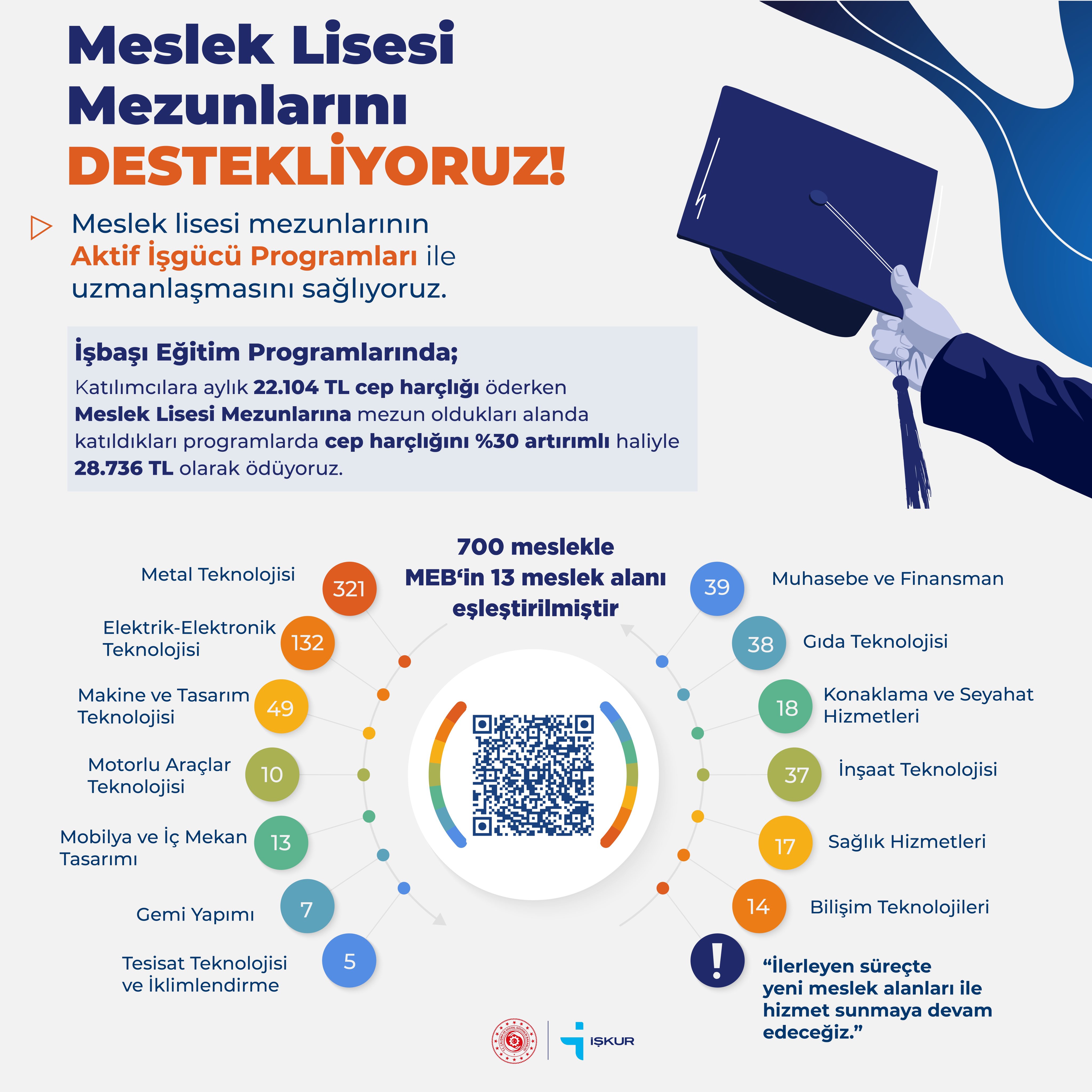 Meslek lisesi mezunlarına kendi alanlarındaki İşbaşı Eğitim Programı’na katılmaları halinde 28 bin 736 lira destek verdiklerini belirten Bakan Işıkhan, "Bu alanda hem işgücü piyasamızın ihtiyaçlarına göre şekillenen politikalarımızı sürdürecek hem de mezunlarımızı maddi açıdan destekleyecek çalışmalarımıza devam edeceğiz" dedi. Çalışma ve Sosyal Güvenlik Bakanı Vedat Işıkhan, İşbaşı Eğitim Programları hakkında sosyal medya hesabından paylaşımda bulundu. İşBaşı Eğitim Programları'na katılanlara 22 bin 104 TL cep harçlığı verildiğini hatırlatan Işıkhan, meslek lisesi mezunu olanlara bu rakamın yüzde 30 daha fazlasının ödendiğini bildirdi. Işıkhan’ın konuya ilişkin paylaşımı şöyle oldu: "Meslek lisesi mezunlarının ‘Aktif İşgücü Programları’ ile bilgi ve tecrübe açısından uzmanlaşmasını sağlıyoruz. ‘İşbaşı Eğitim Programları’nda katılımcılara aylık 22.104 TL cep harçlığı öderken, meslek lisesi mezunlarına kendi alanlarında katıldıkları programlarda cep harçlıklarını %30 daha fazla ödüyoruz. Bu alanda hem işgücü piyasamızın ihtiyaçlarına göre şekillenen politikalarımızı sürdürecek hem de mezunlarımızı maddi açıdan destekleyecek çalışmalarımıza devam edeceğiz.” Kaynak: Vedat Işıkhan - X [news_id:762741]
