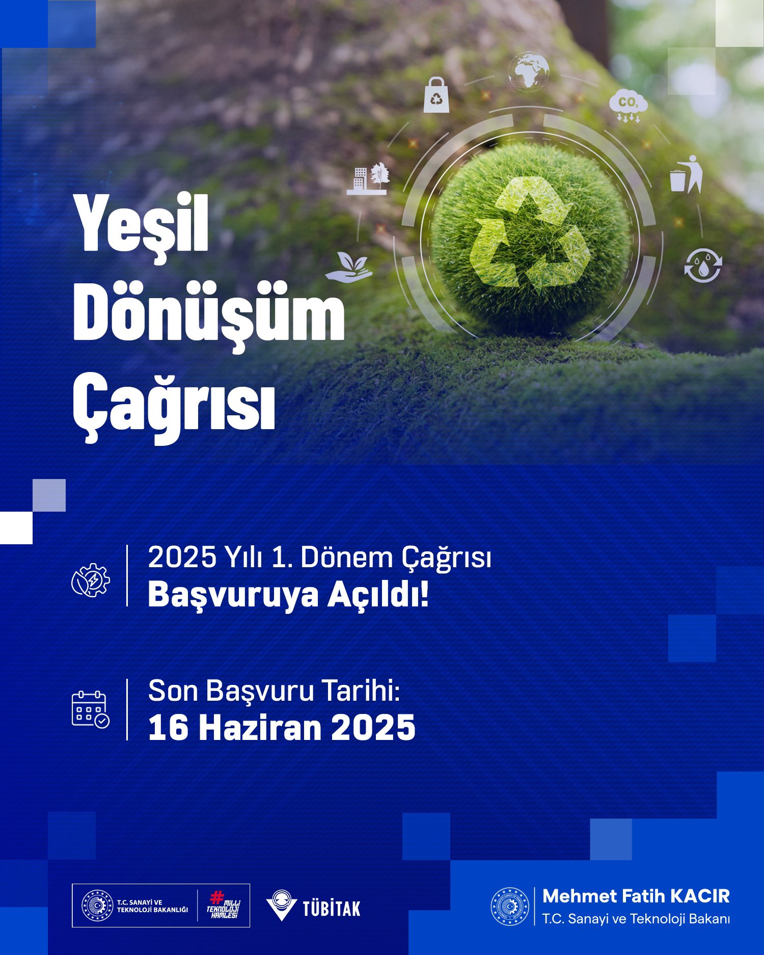 Sanayi ve Teknoloji Bakanı Mehmet Fatih Kacır, TÜBİTAK bünyesinde sanayide yeşil dönüşüm çağrısının başvuruya açıldığını duyurdu. Kacır, sosyal medya hesabından yaptığı paylaşımda, Dünya Bankası işbirliğiyle yürüttükleri "Türkiye Yeşil Sanayi Projesi" kapsamında yeşil dönüşüm odaklı AR-GE ve yenilik projelerini desteklediklerini ifade etti. TÜBİTAK SAYEM Yeşil Dönüşüm 2025 yılı 1. Dönem Çağrısı'nın başvuruya açıldığına işaret eden Kacır, "Sanayide yeşil dönüşüm için çalışmaya, Türkiye'nin kalkınma yolculuğuna çevre dostu uygulamalarla hız vermeye devam edeceğiz. Son başvuru tarihi 16 Haziran." değerlendirmesinde bulundu. Kaynak: Mehmet Fatih Kacır - X AR-GE ve yenilik ağları desteklenecek Bakanlıktan yapılan açıklamaya göre, koordinatörlüğünü Bakanlığın yürüttüğü Dünya Bankası Türkiye Yeşil Sanayi Projesi kapsamında özel sektörün yeşil dönüşüme yönelik ürün veya süreç geliştirme faaliyetleri TÜBİTAK-TEYDEB tarafından destekleniyor. Çağrı çerçevesinde özel sektör, üniversite ve kamu işbirliğiyle yenilik platformları oluşturularak, Türkiye'nin "yeşil büyümesi"ne katkı sağlayacak katma değeri yüksek ürün veya ürün grubu geliştirilmesi için bir teknoloji ekosistemi olan "Sanayiye Yönelik AR-GE ve Yenilik Ağları" desteklenecek. Özel sektör öncülüğünde, üniversite ve kamu işbirliğiyle ihtisaslaşmış bir "AR-GE ve Yenilik Platformu"nun ve bu platform aracılığıyla Ürünleştirme Yol Haritalarının (ÜYH) oluşturulmasına ve bu haritalar çerçevesinde yeşil dönüşüme yönelik ürün veya ürün grubu geliştirilmesine yönelik Ürünleştirme Programları (ÜPG) desteklenecek. KOBİ'lere 15 milyon lira destek Program süresi 36 ay olarak belirlenirken, platform başına program önerisi için üst limit 300 milyon lira olacak. Platformda yer alacak özel sektör kuruluşları hibe ve geri ödemeli olarak, üniversiteler ve araştırma kurumları yüzde 100 hibe olarak destek alabilecek. Platformda bulunacak kuruluşlar için bütçe üst limiti KOBİ'ler için 15 milyon lira, büyük ölçekli kuruluşlar için 60 milyon lira, üniversiteler ve araştırma kurumları için 10 milyon lira oldu.